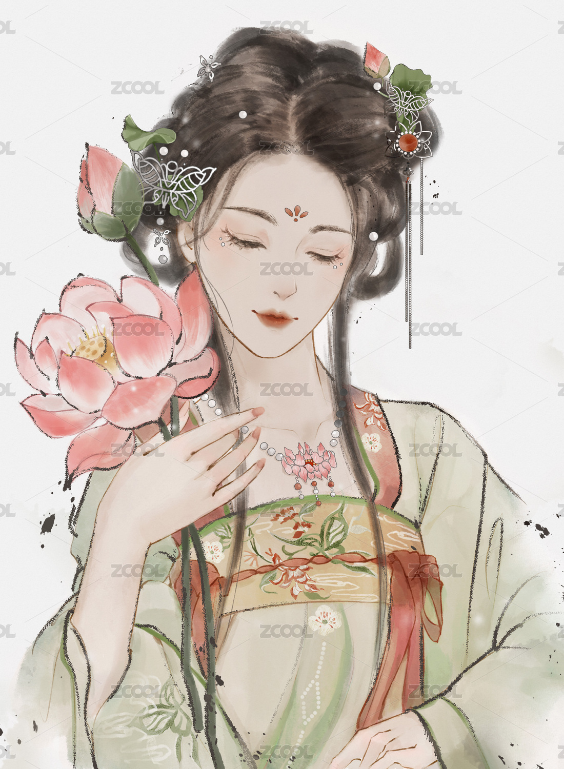 仿水墨十二花神插图 六月莲花