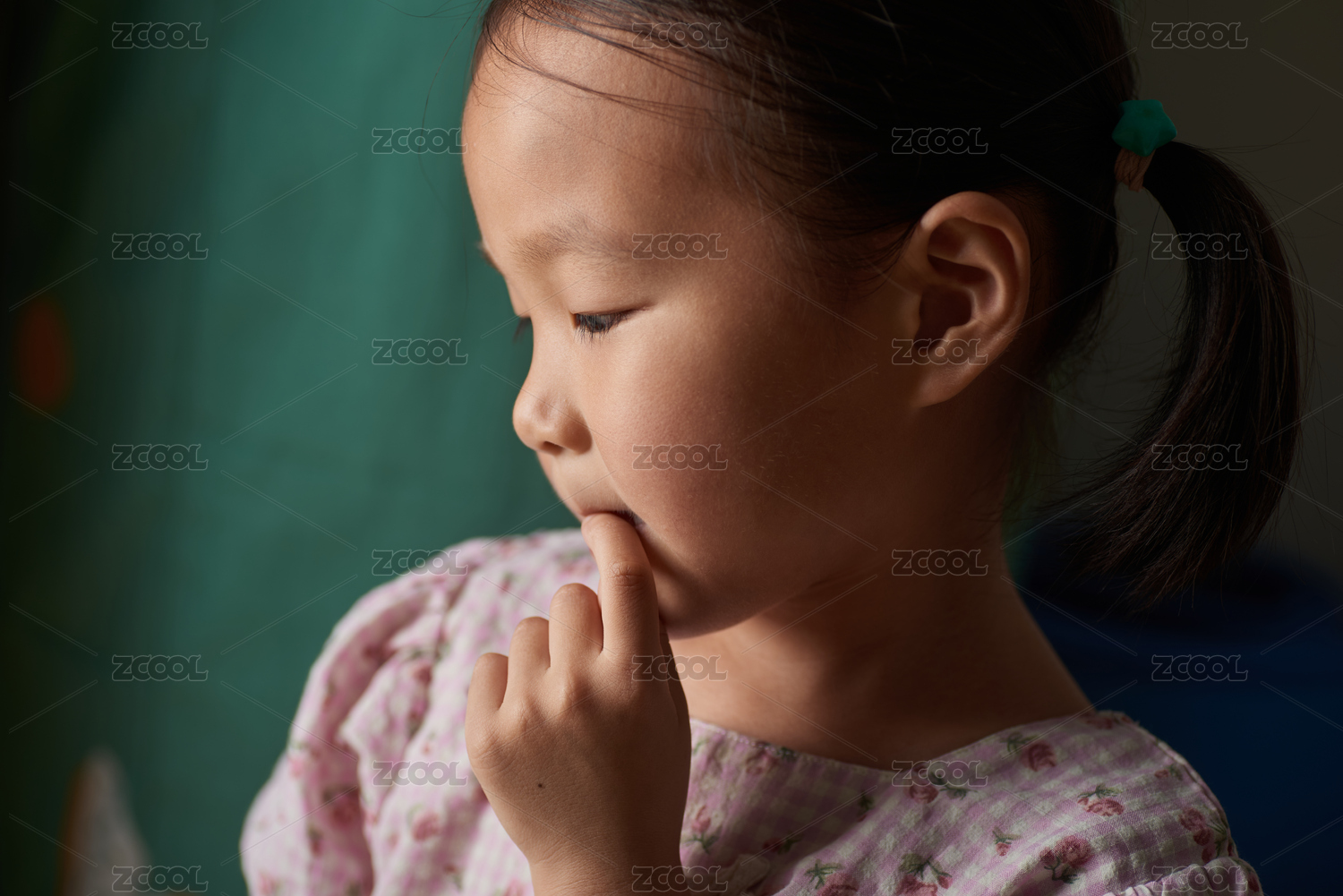 穿睡衣的小女孩啃手指