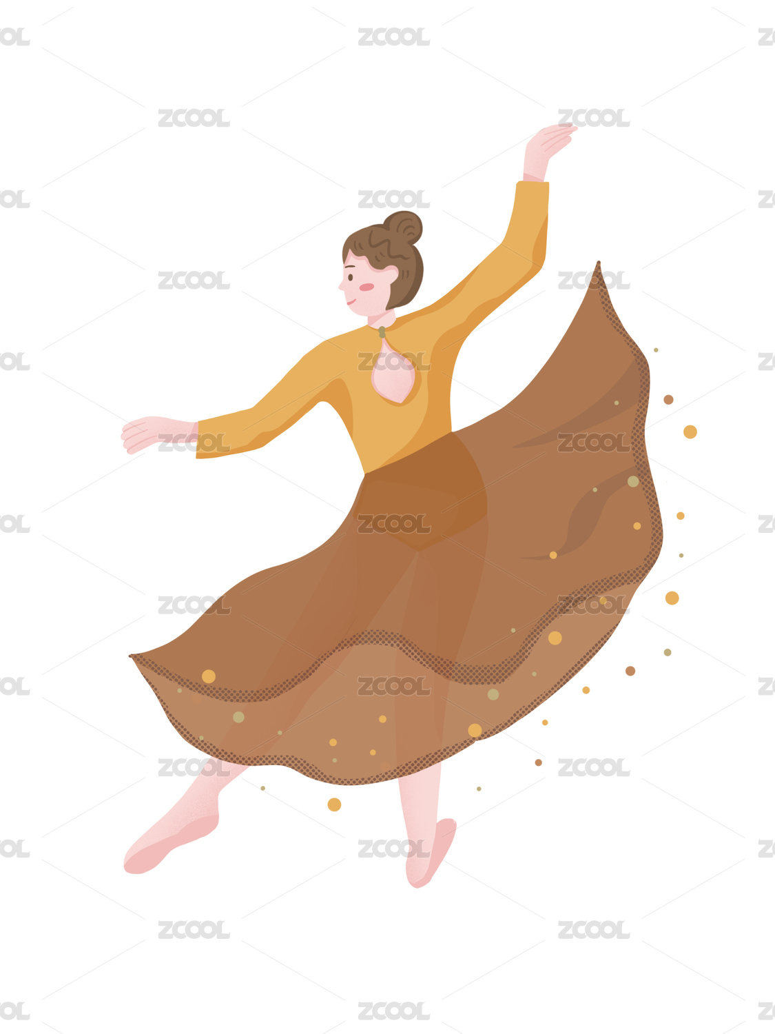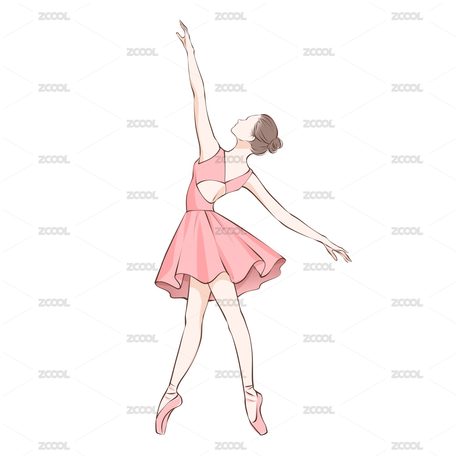 手绘扁平可爱人物插画 跳芭蕾舞的优雅小女孩