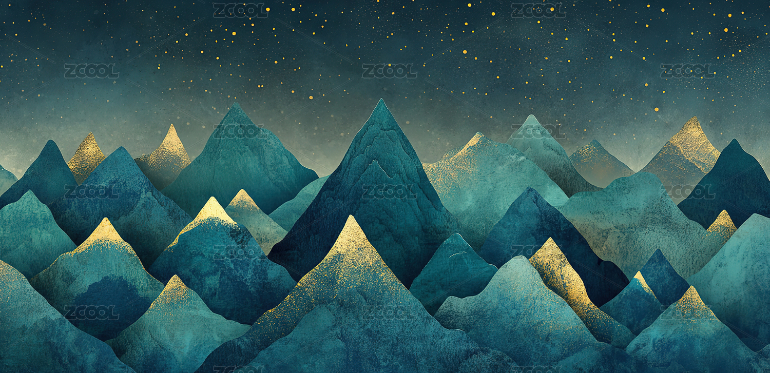 数码艺术描金蓝调日出山水画海报背景