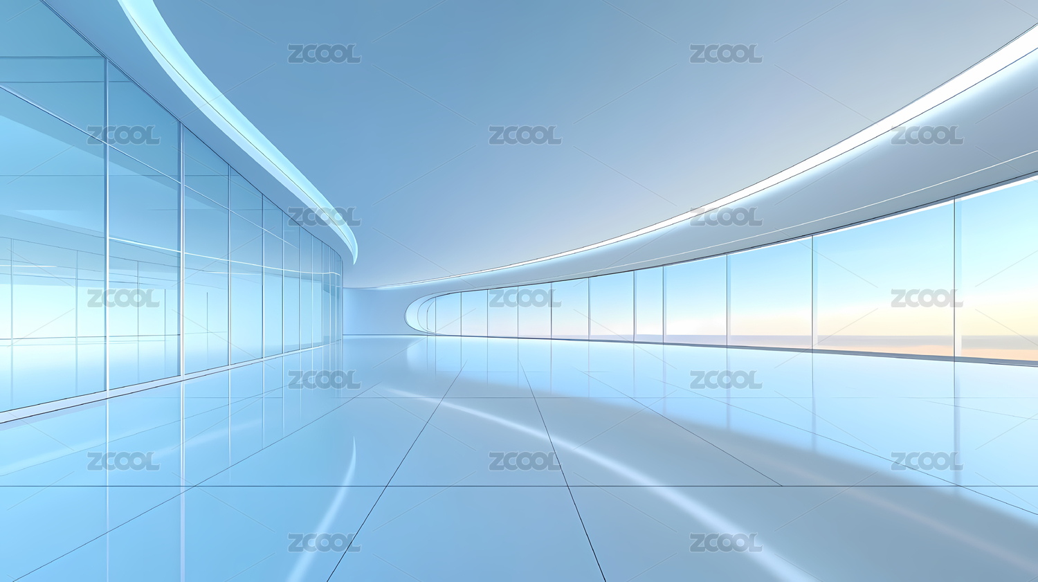 现代弧形玻璃建筑内部