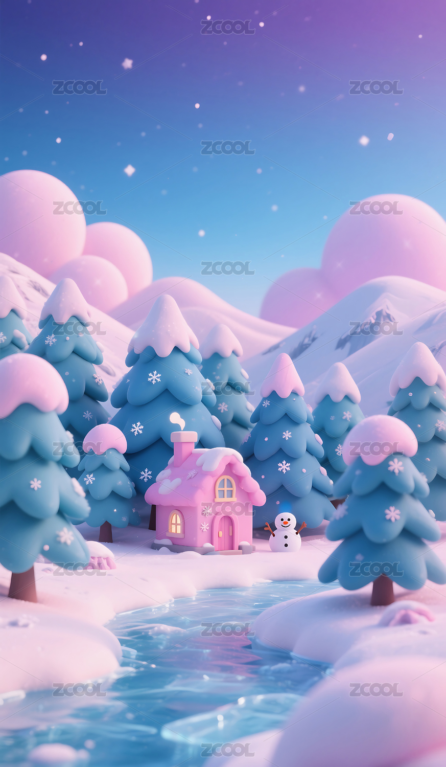 粉色糖果主题雪景图