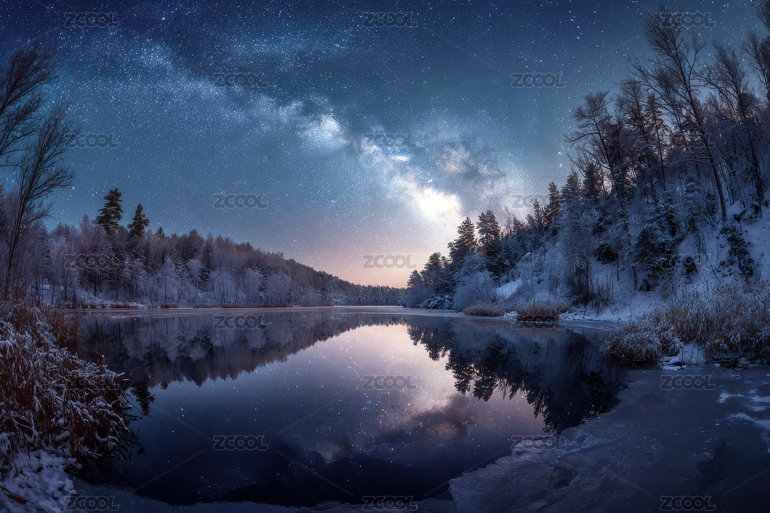 冬季冬天户外风景,鸟瞰雪山,森林和湖泊