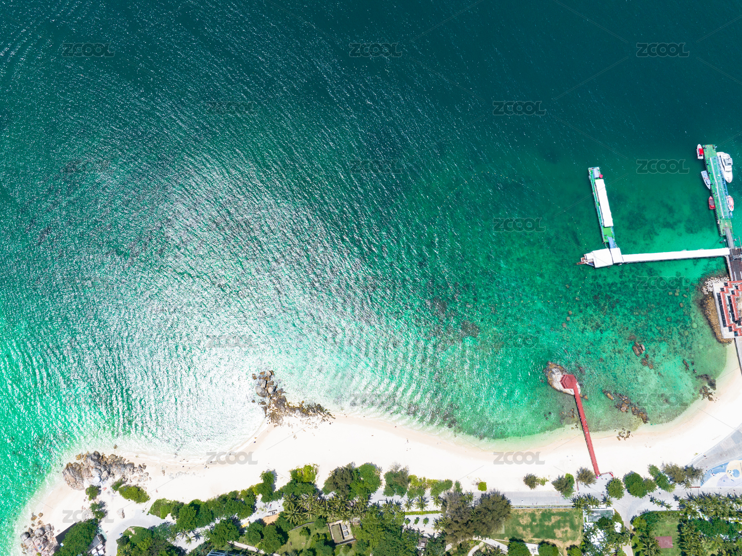 航拍海南三亚亚龙湾热带海滨纯净的蓝色海滩