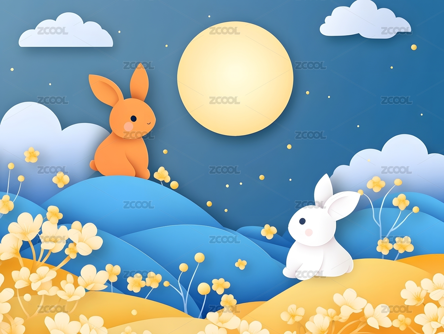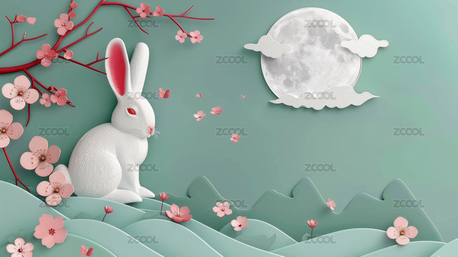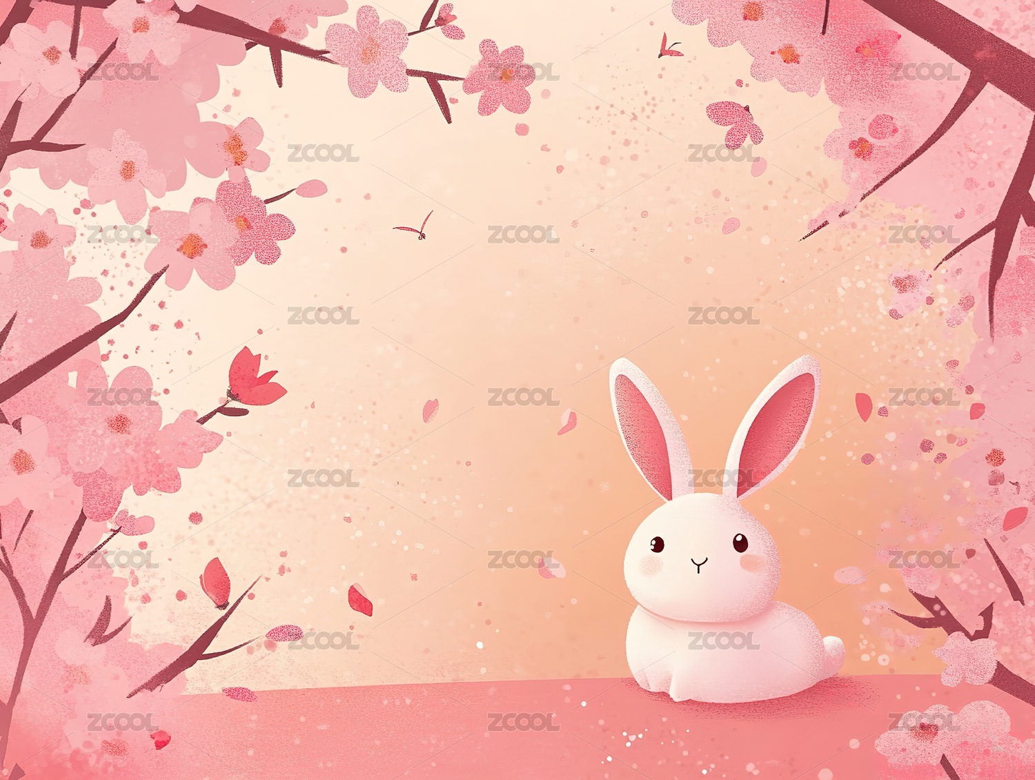 可爱的兔子在鲜花盛开彩蛋遍地的田野里