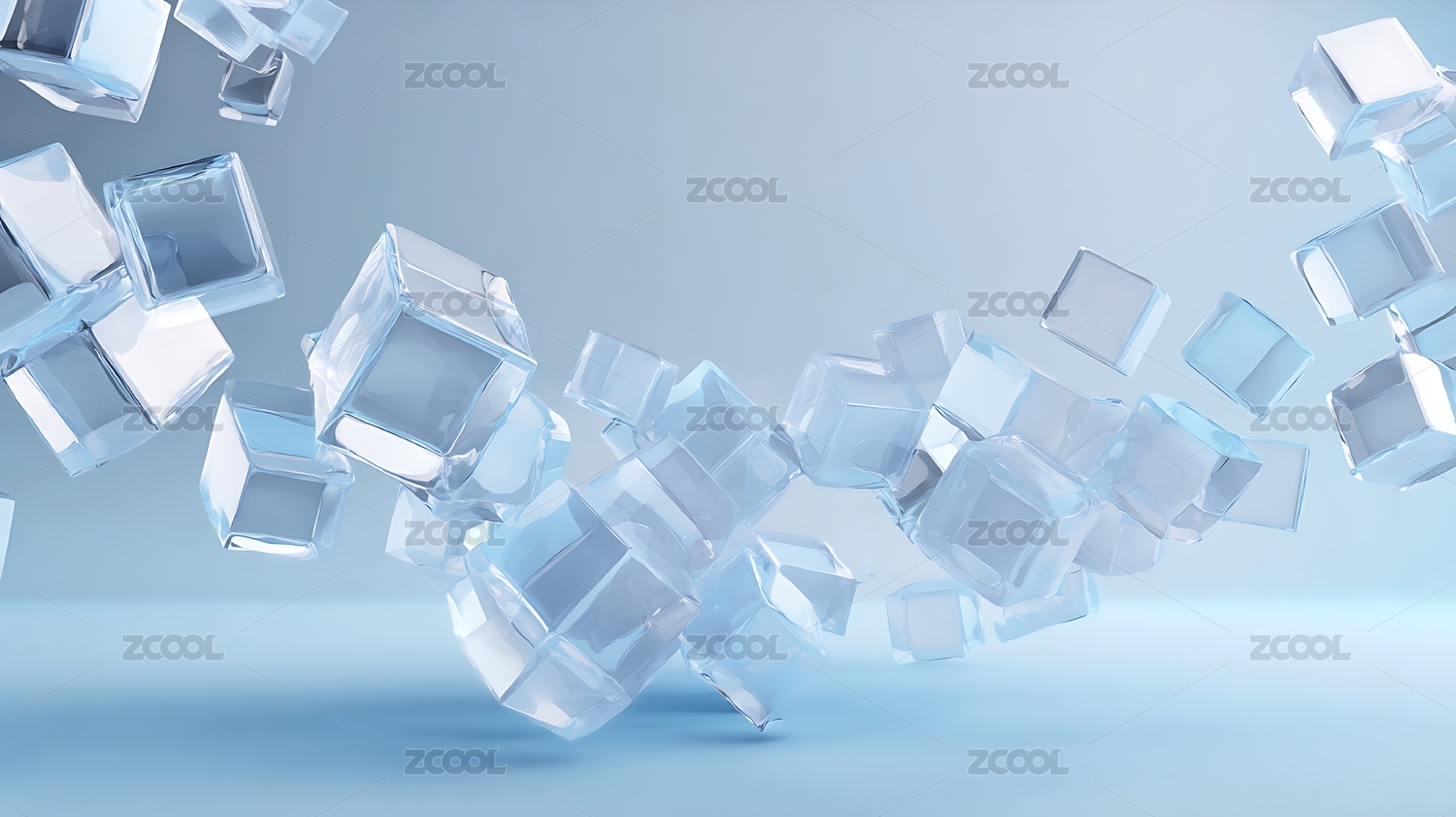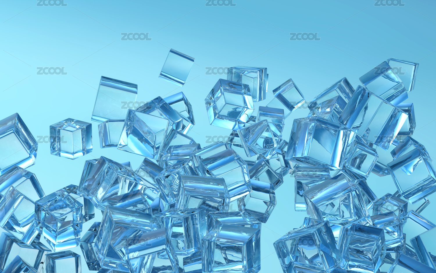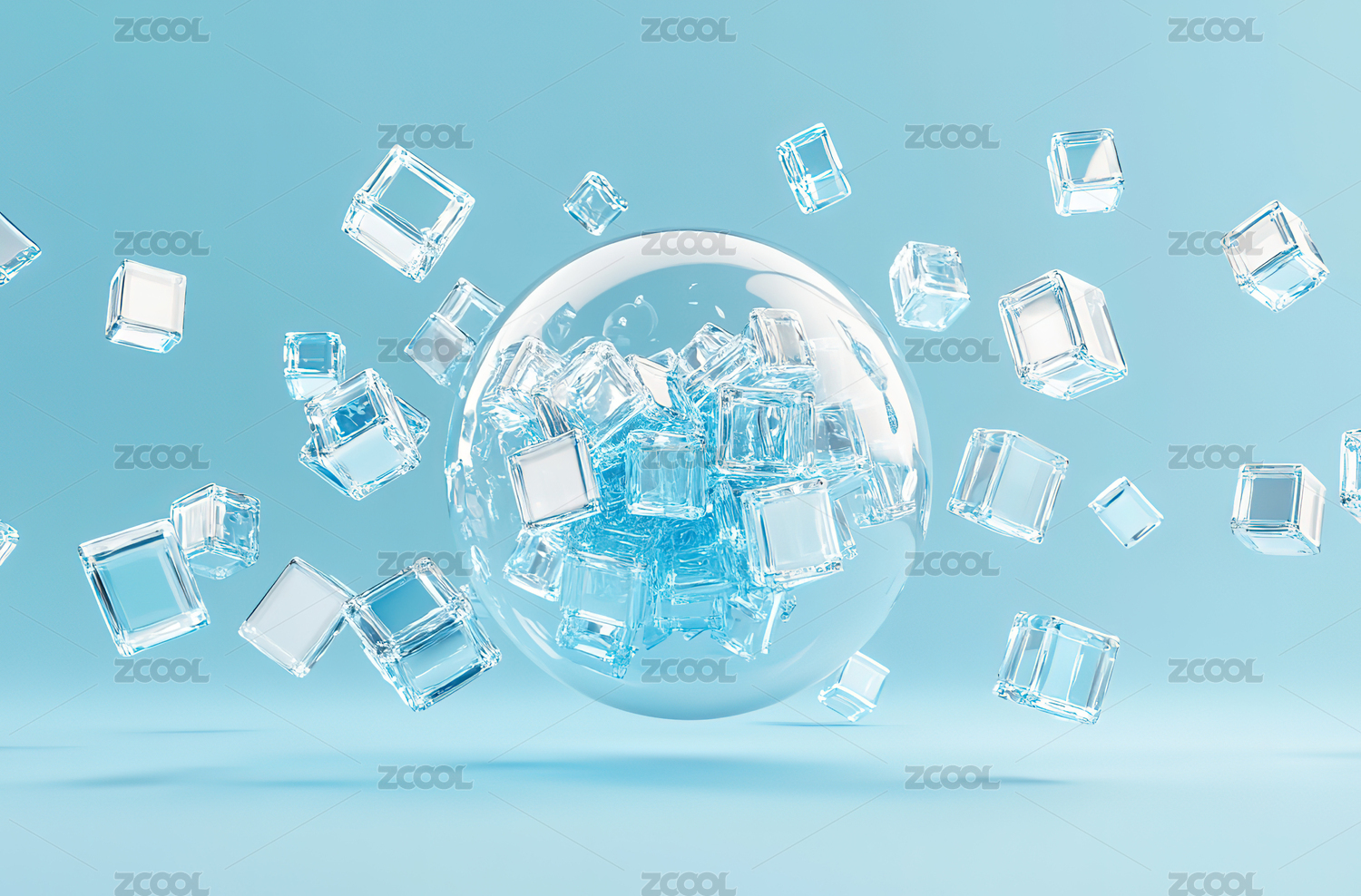 冰块漂浮蓝色背景