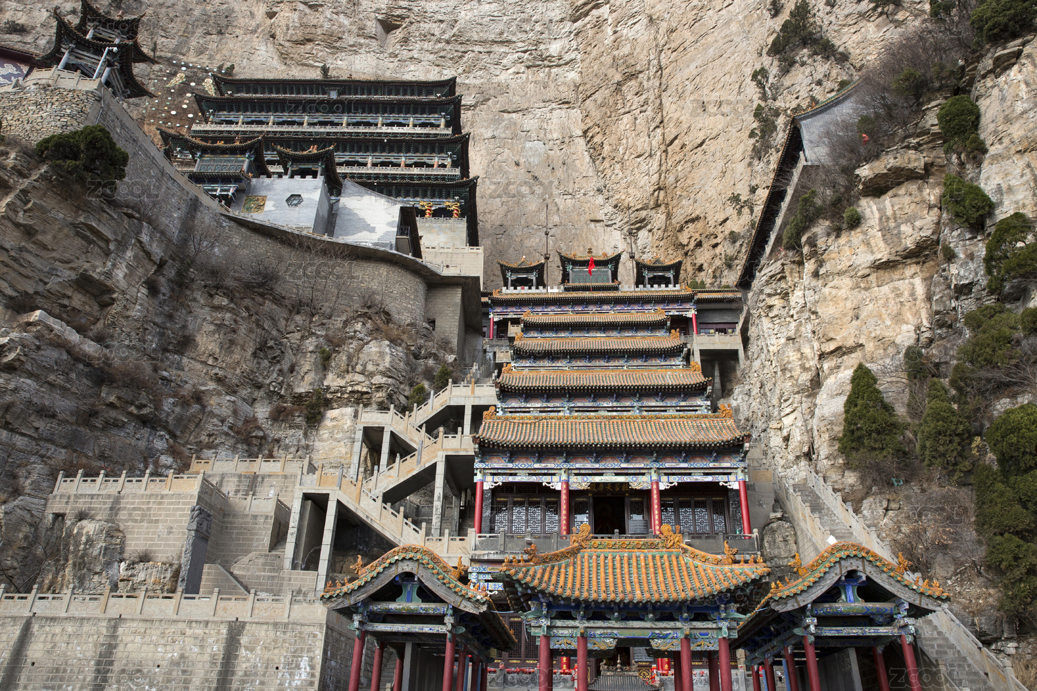 中国山西大同浑源北岳恒山悬空寺古建筑景观