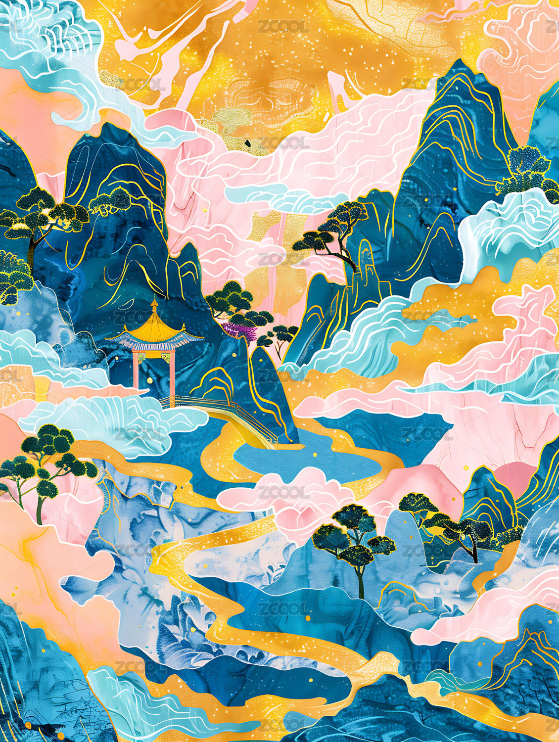 插画,AI数字艺术,手绘,户外,现代,休闲,自然,风景,背景,创意