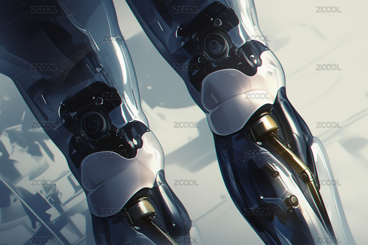 科技医疗金属透明高分子假肢膝关节3D插画