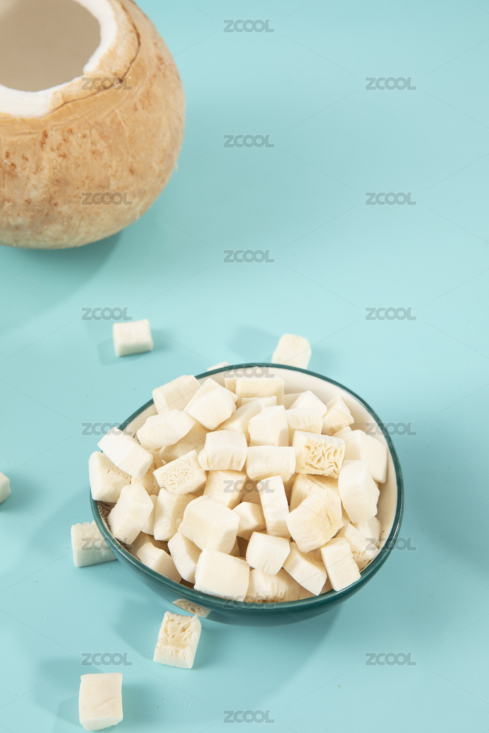 白底上放着椰子