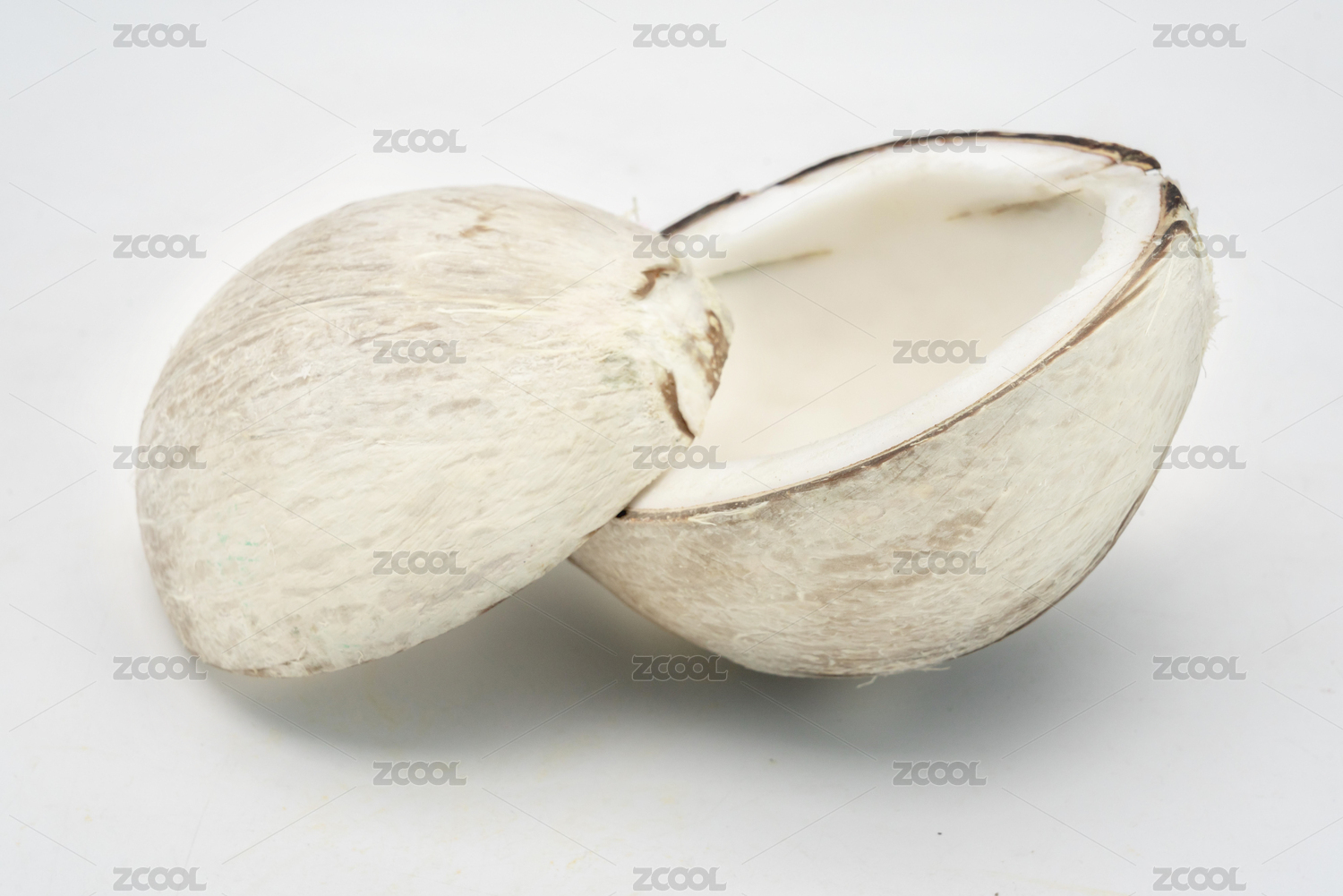 纯白色背景下的新鲜椰果