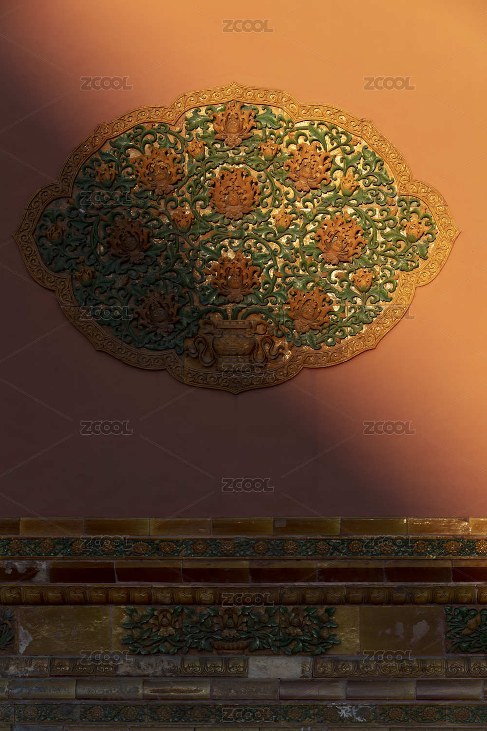 中国故宫的莲花琉璃瓦浮雕