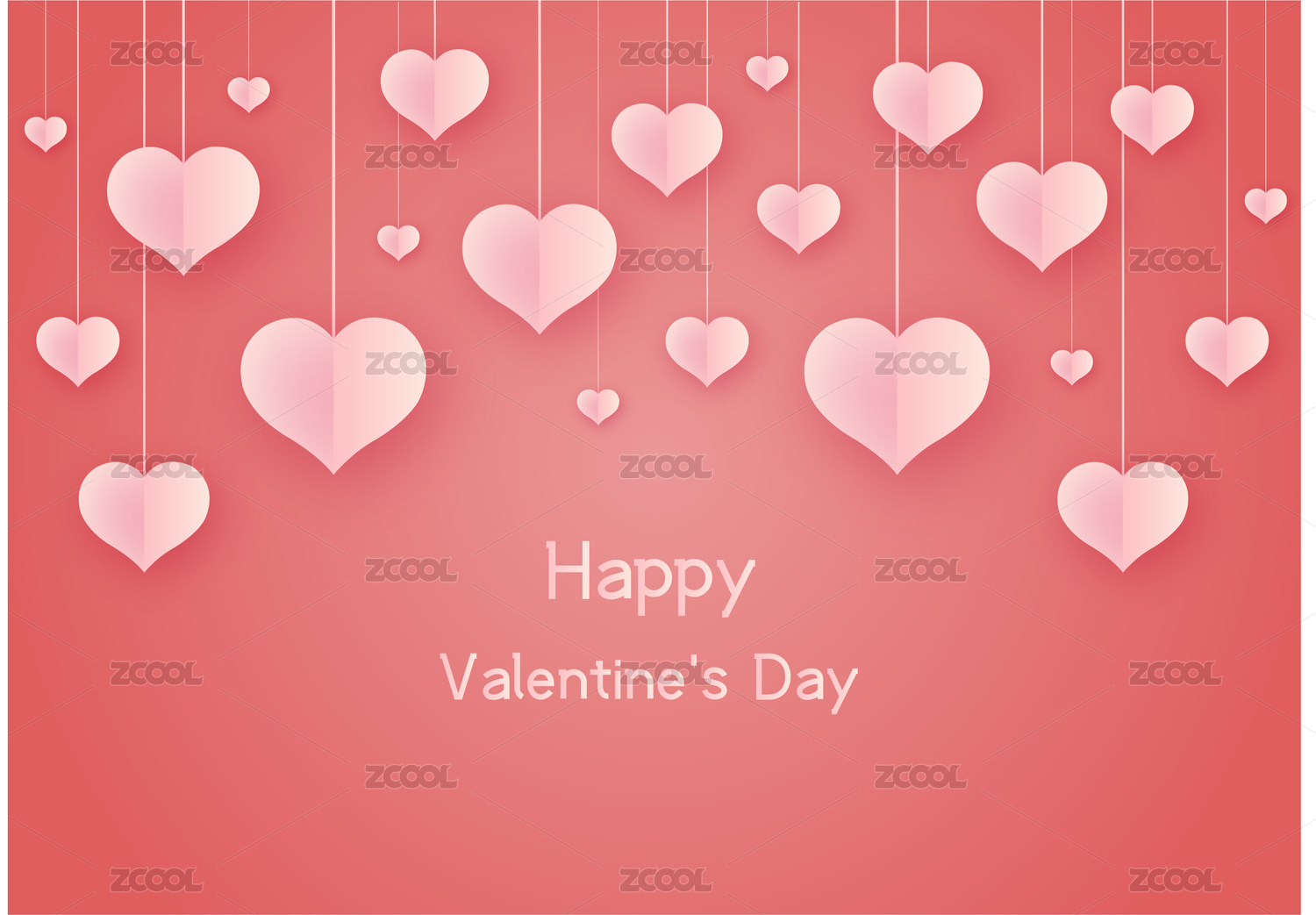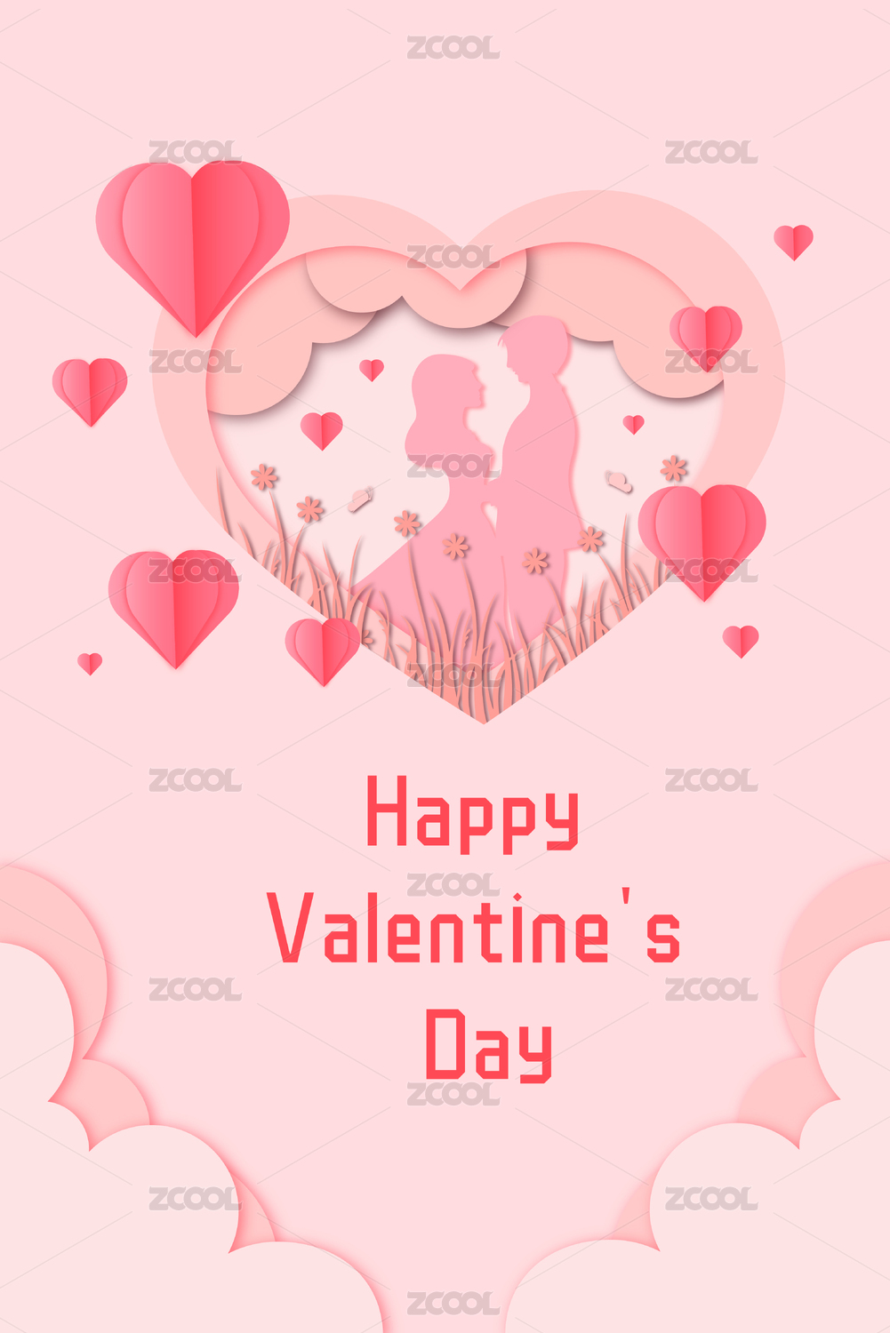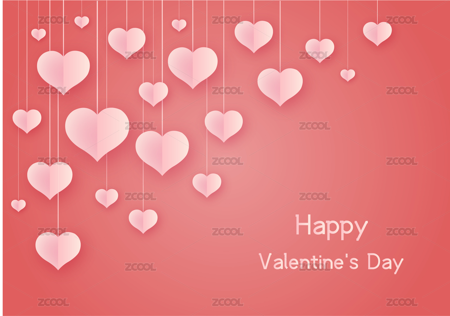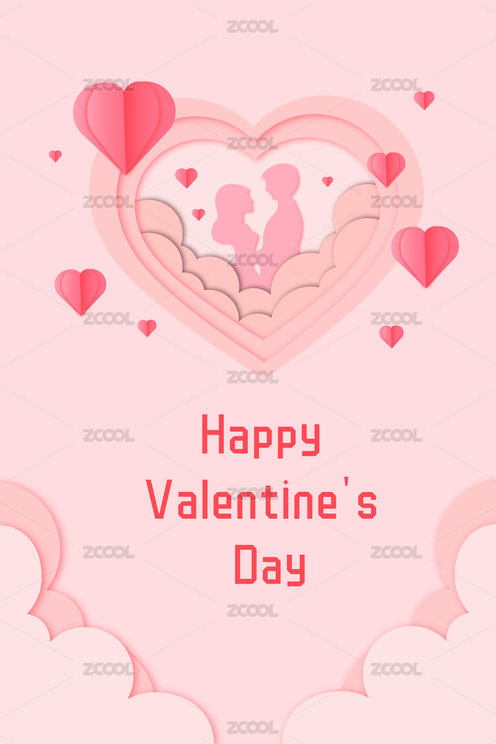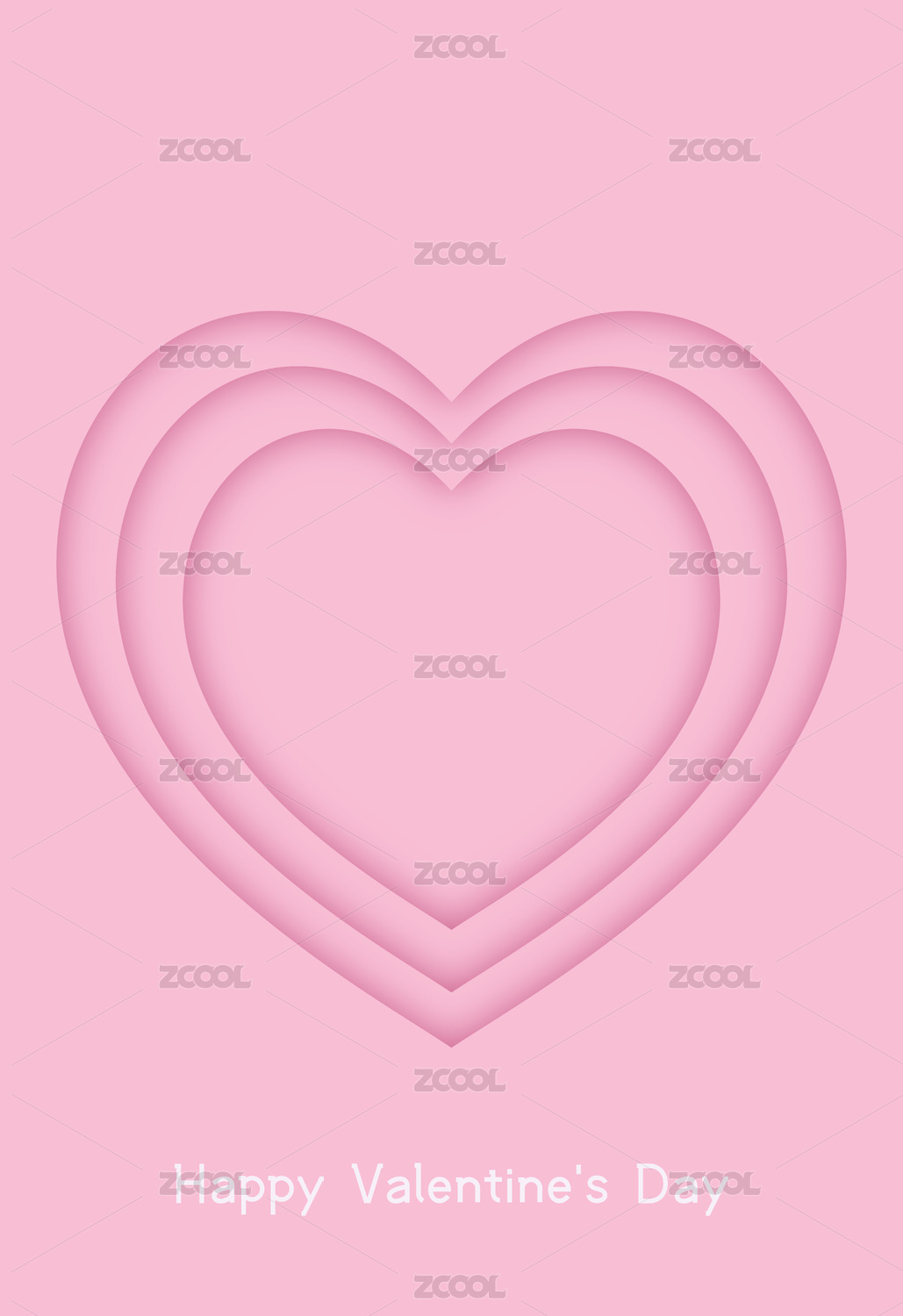 粉红色剪纸与粉红色立体心形竖构图矢量插画背景