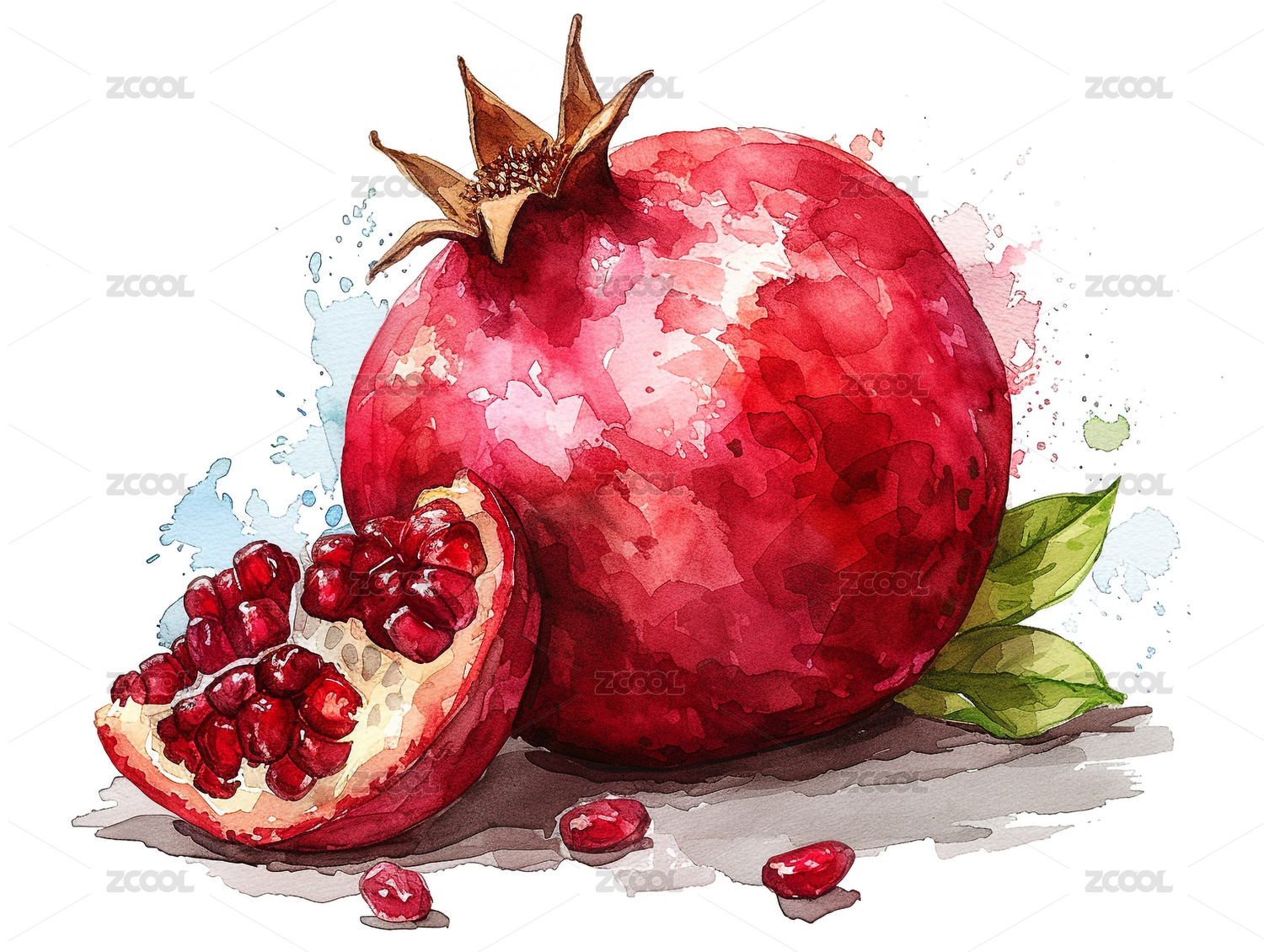 水彩水果石榴