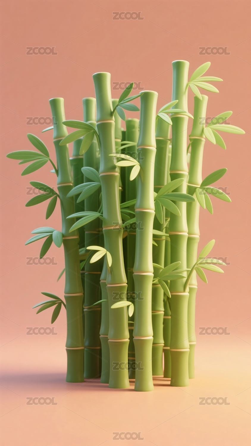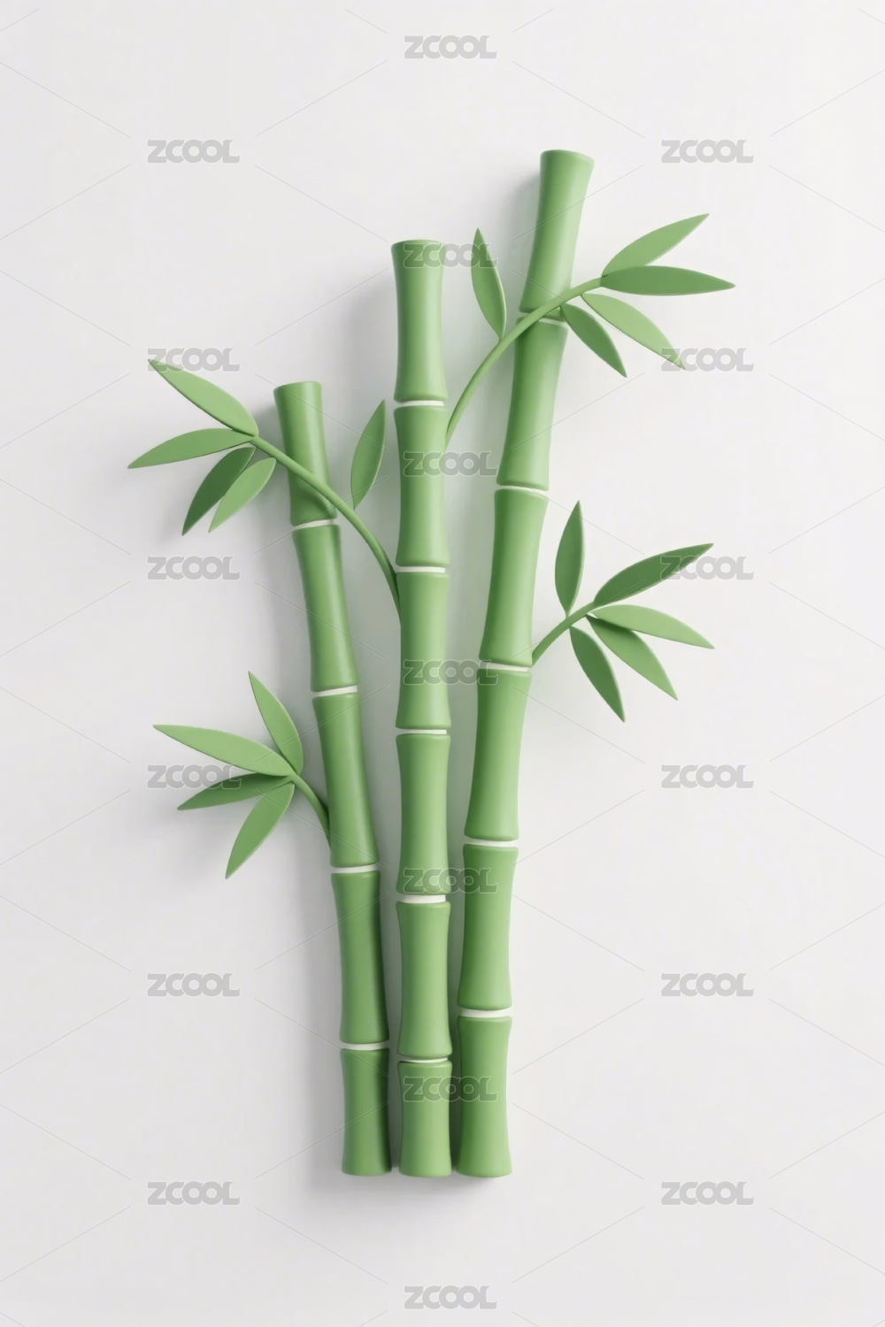 三维, 立体, 3D, 渲染, 竹子, 竹竿, 竹叶, 绿色, 植物, 自然