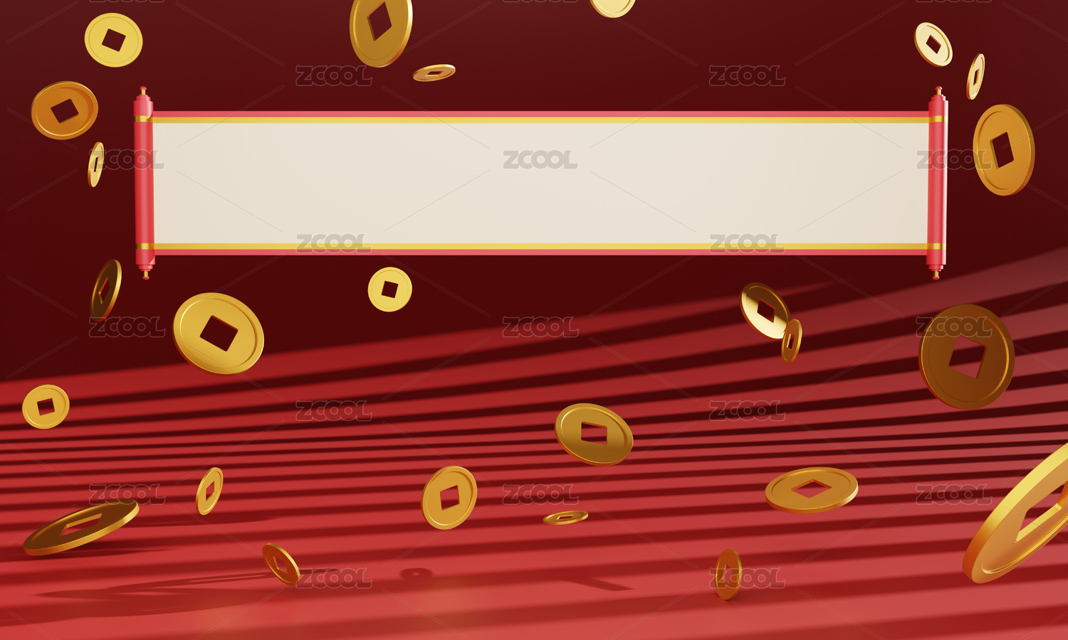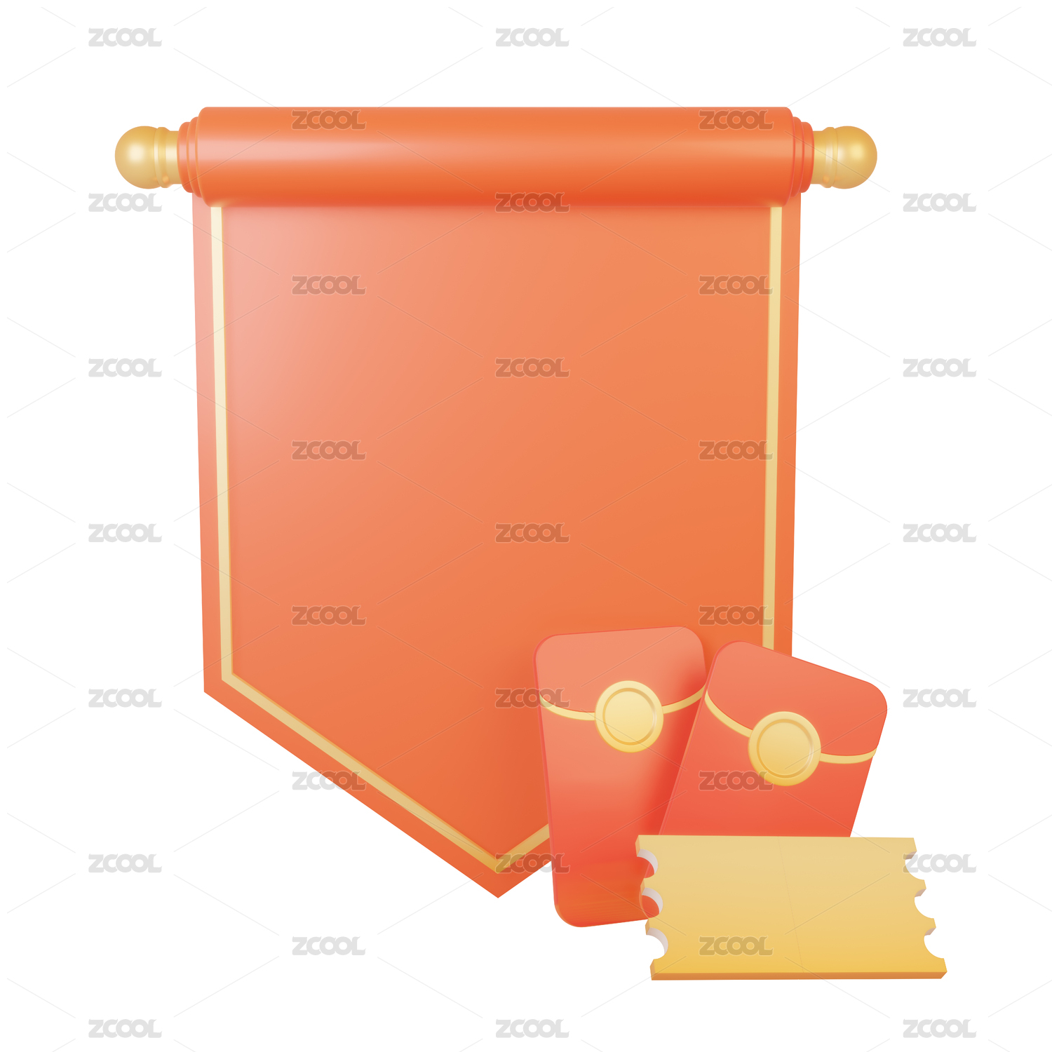 红金色空白锦旗和礼物优惠促销新年喜庆插画