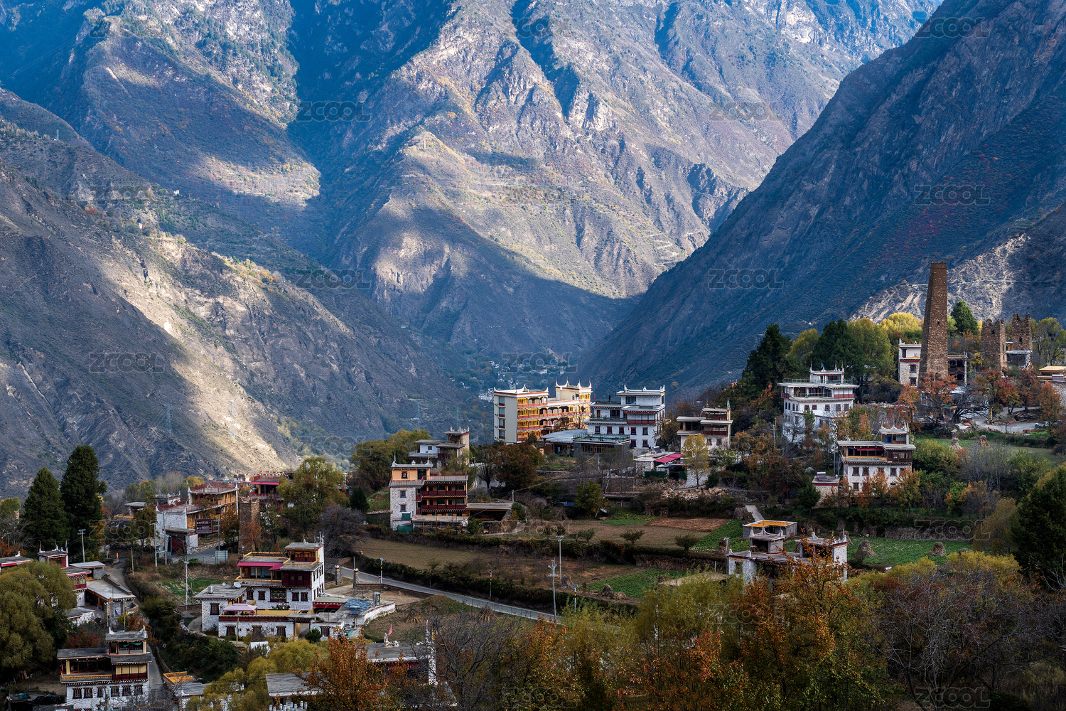中路藏寨,藏寨,丹巴,美人谷,甘孜藏族自治州,丹巴县,中国,四川省,自然,全景