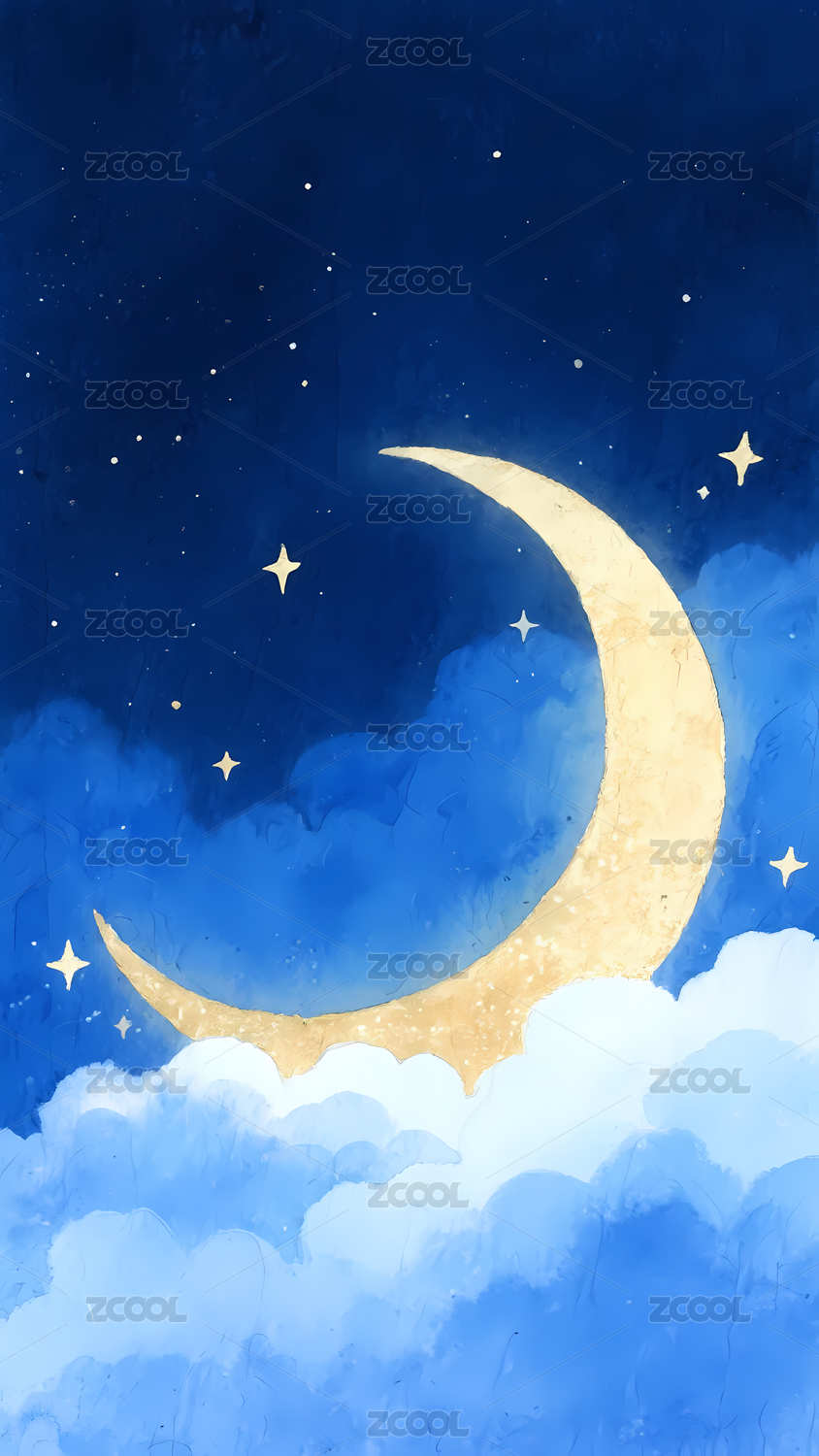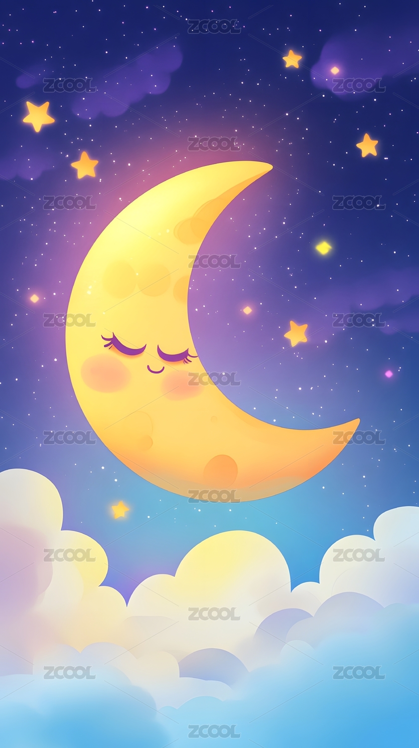 卡通月亮云朵夜空背景图