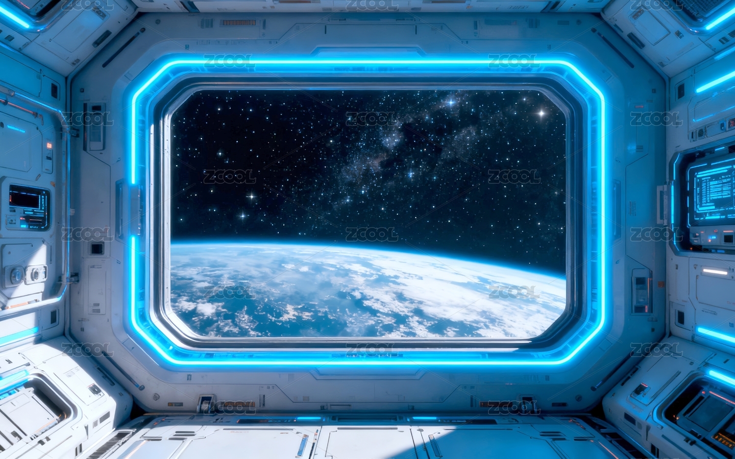 设计,科幻,太空,飞船,未来,科技,蓝色,橙色,灯光,走廊