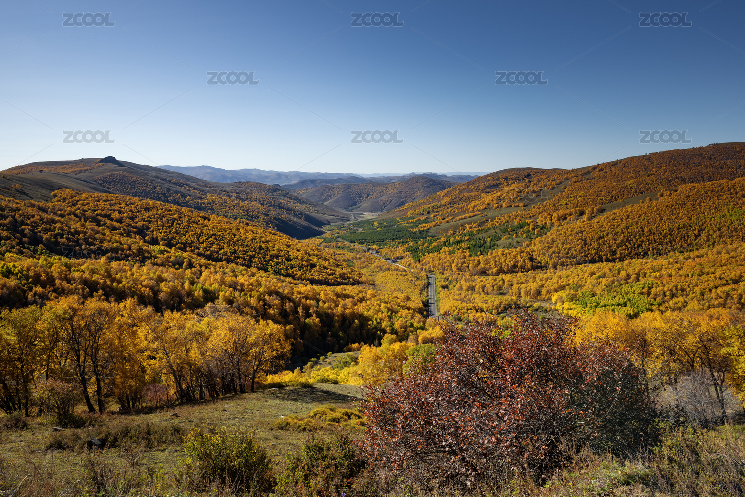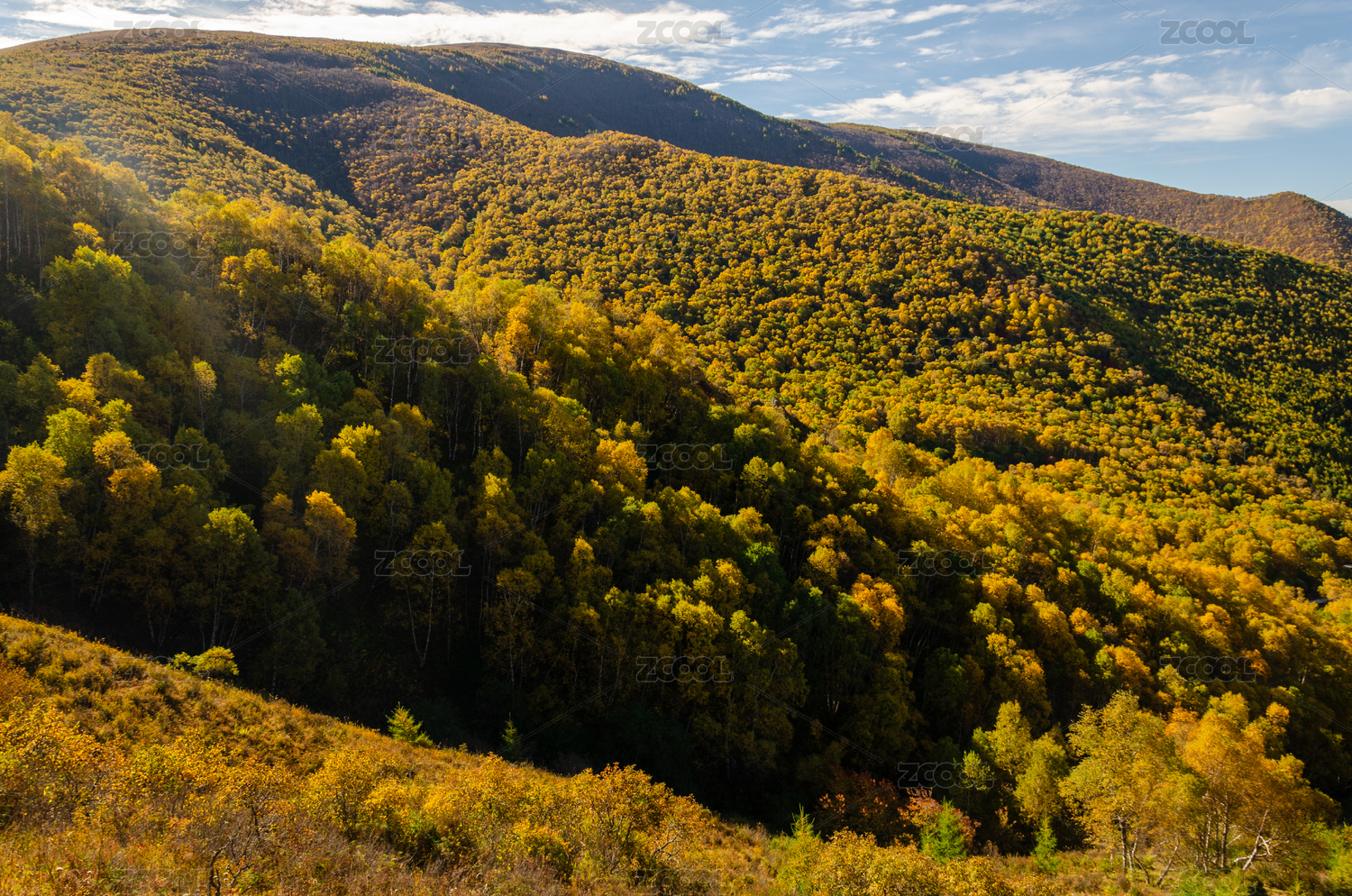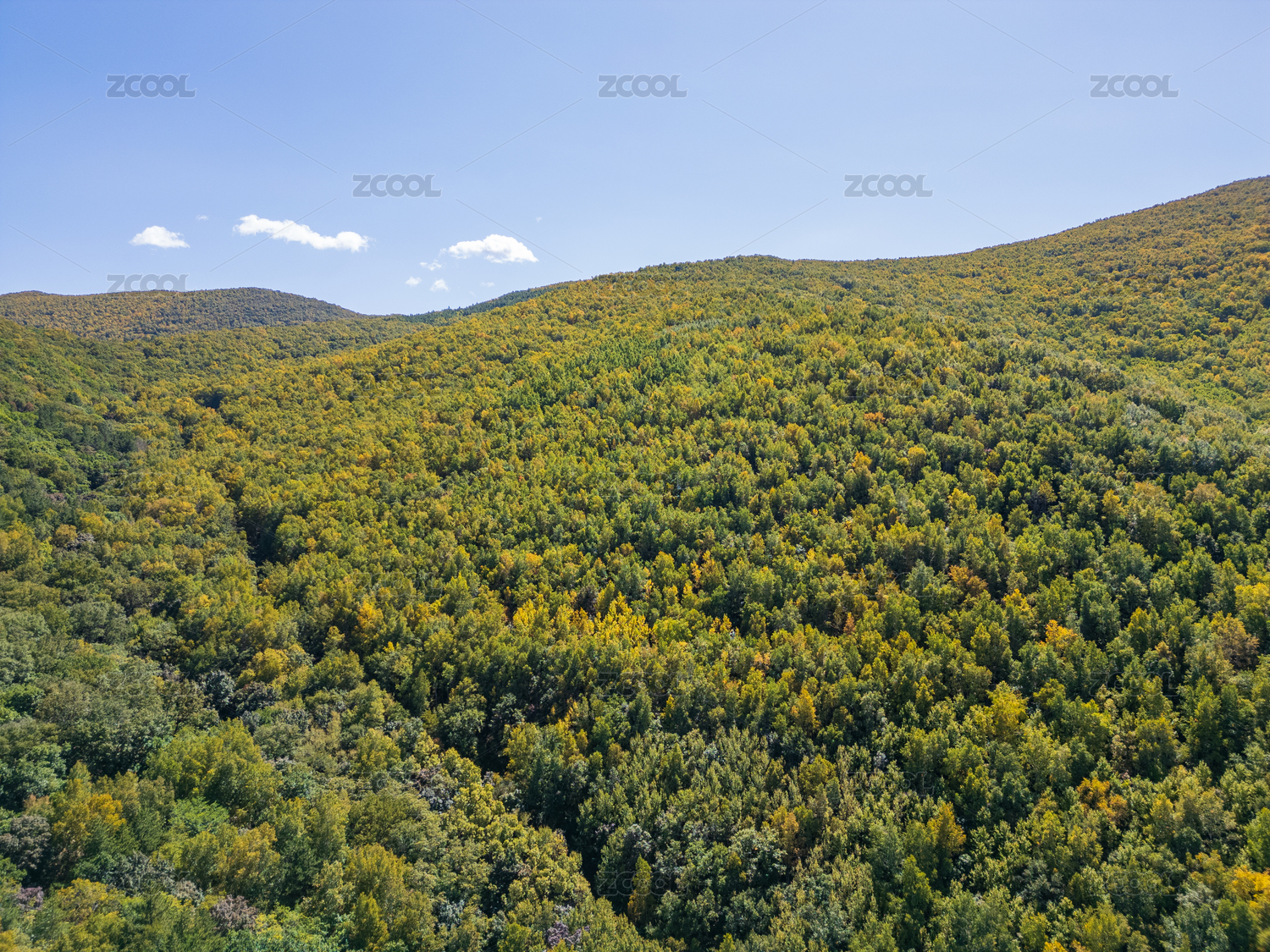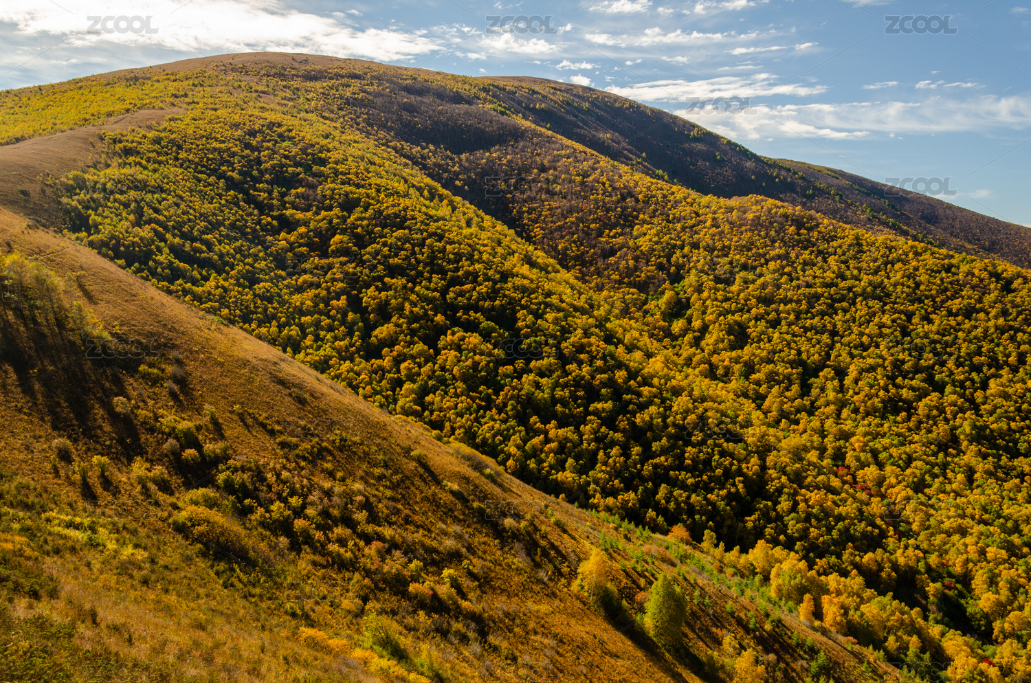 秋天山林满山黄叶