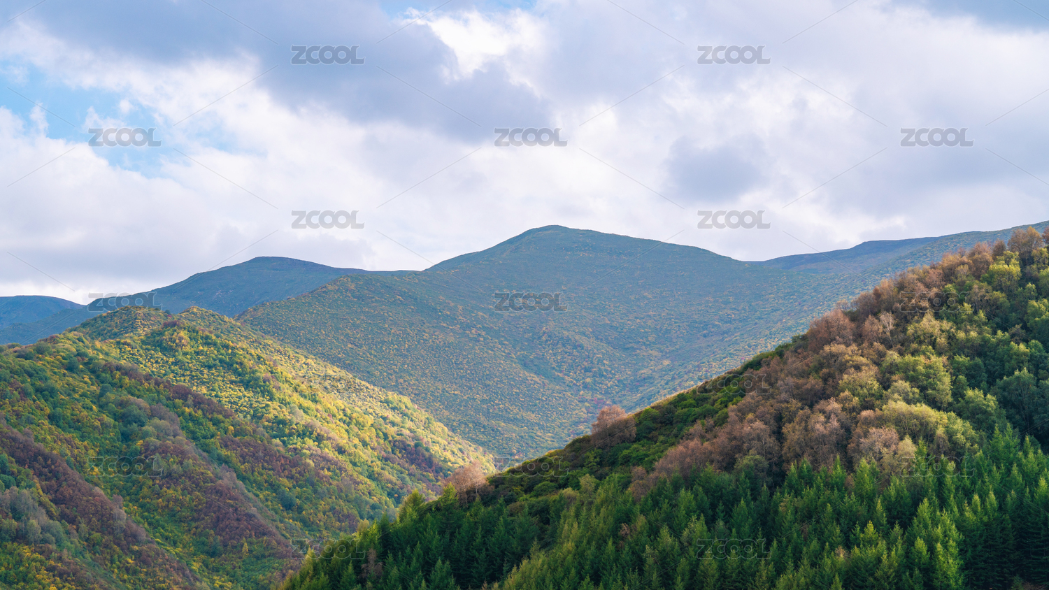 秋日山坡林地风光