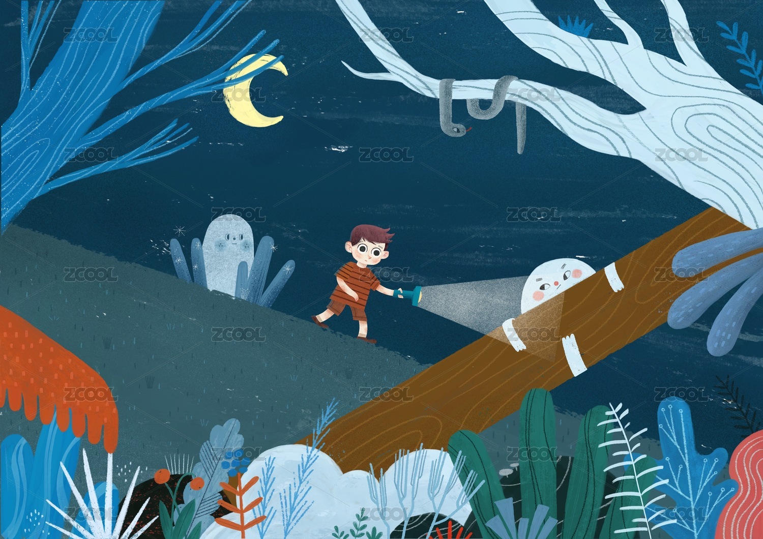 儿童插画教育男孩夜晚森林精灵手绘夏至