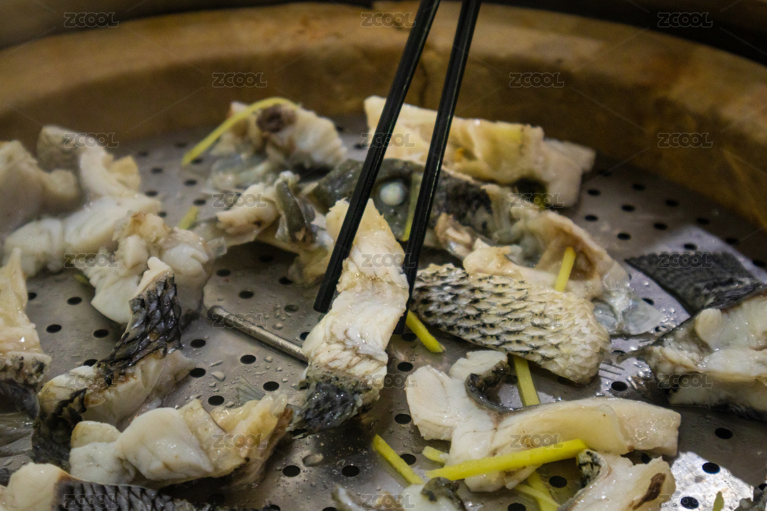蒸笼里的热气腾腾鲫鱼蒸饭