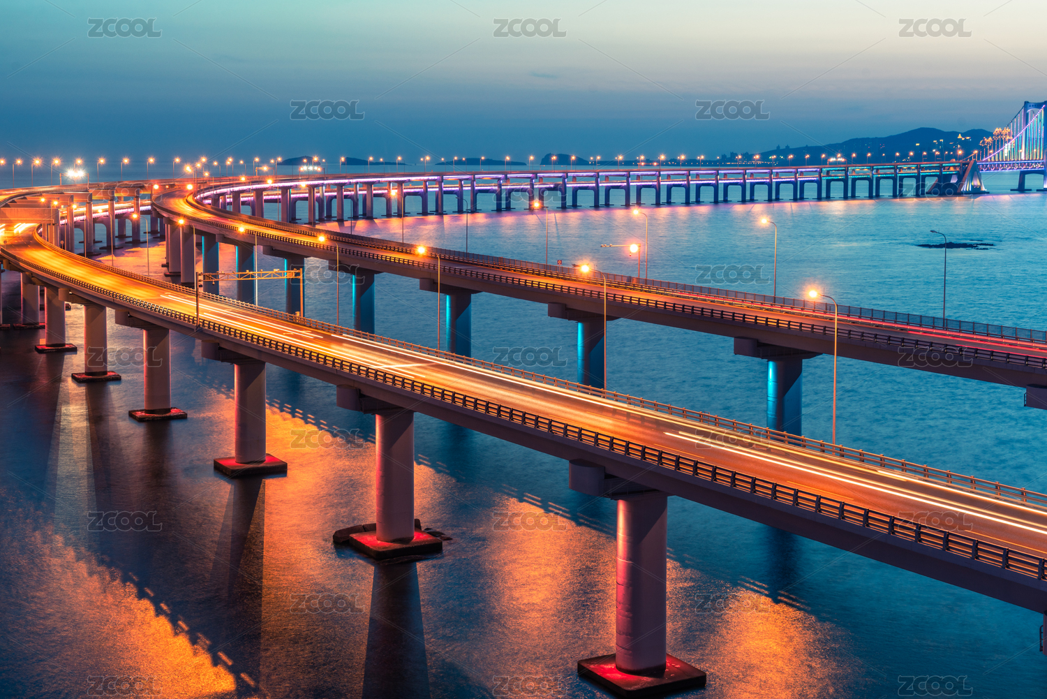 大连跨海大桥黄昏,大连,中国的标志性建筑。