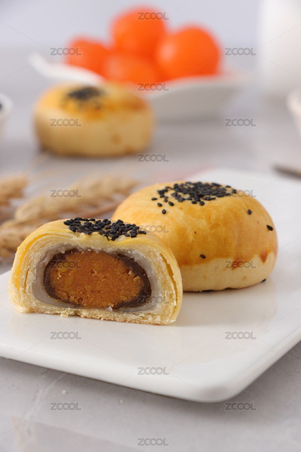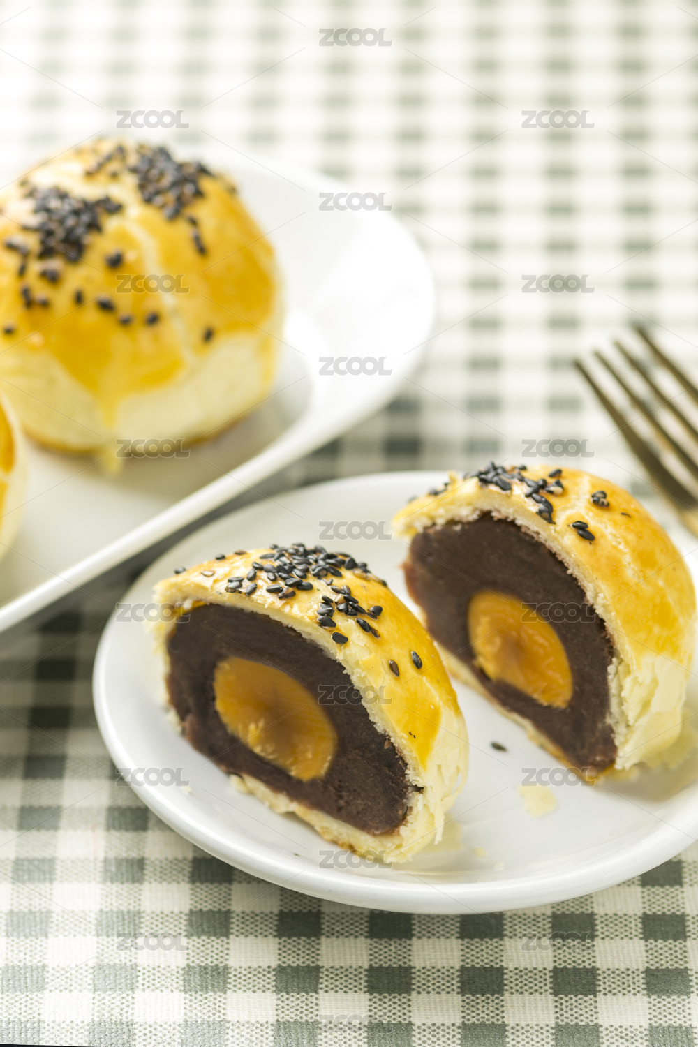 传统中式点心蛋糕蛋黄酥装在碟子里