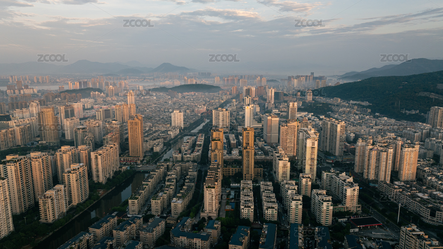 夕阳下航拍漳州