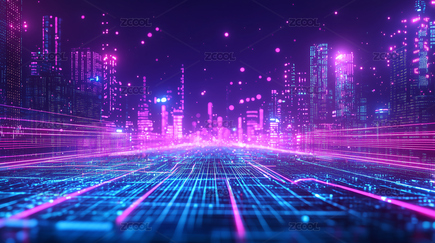 未来都市,数字网络交织,光影绚丽