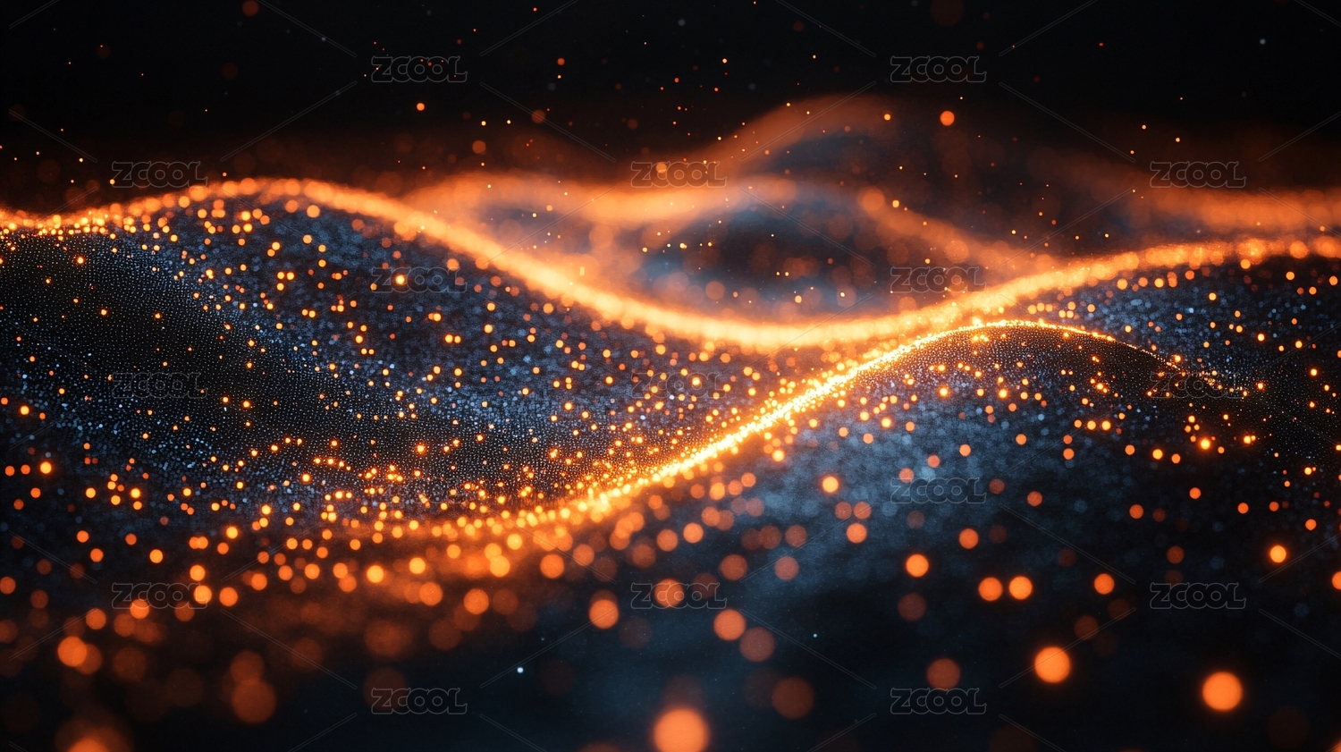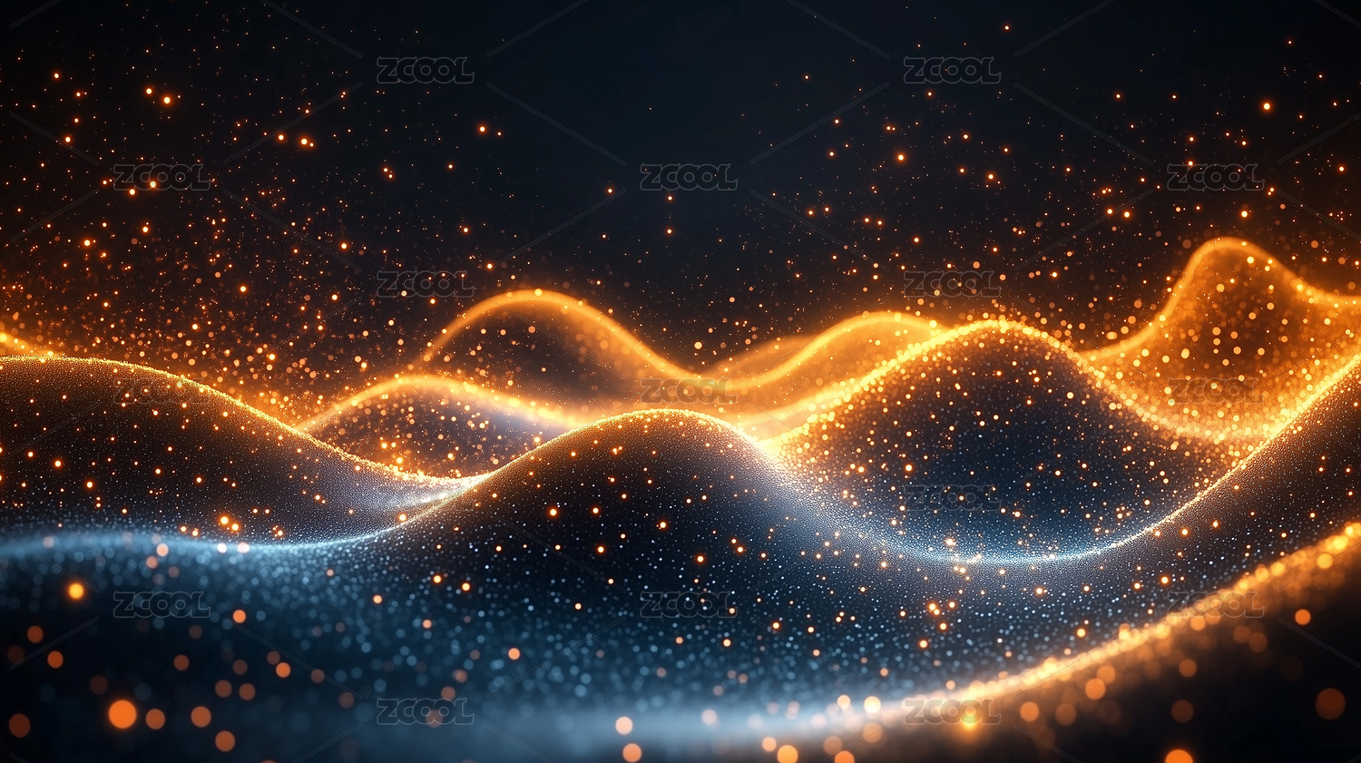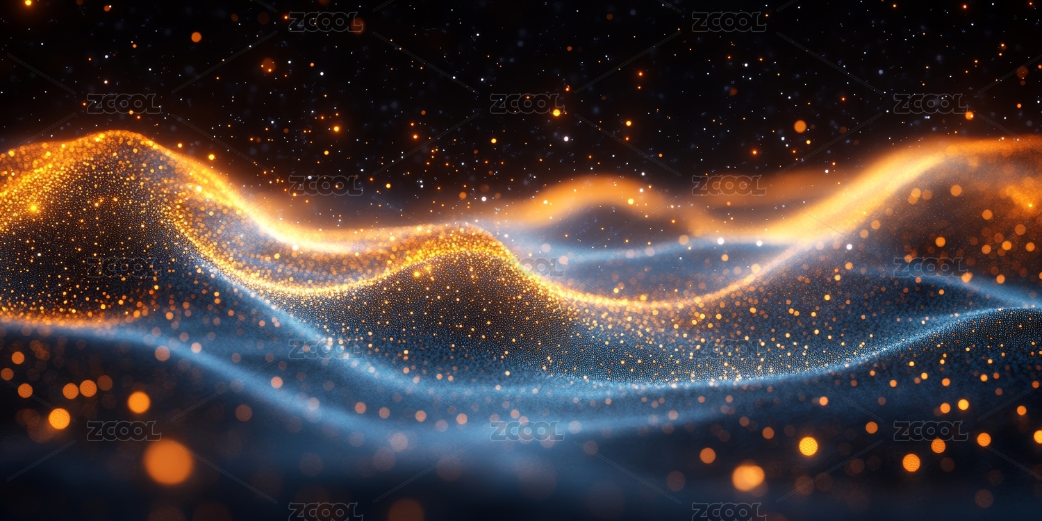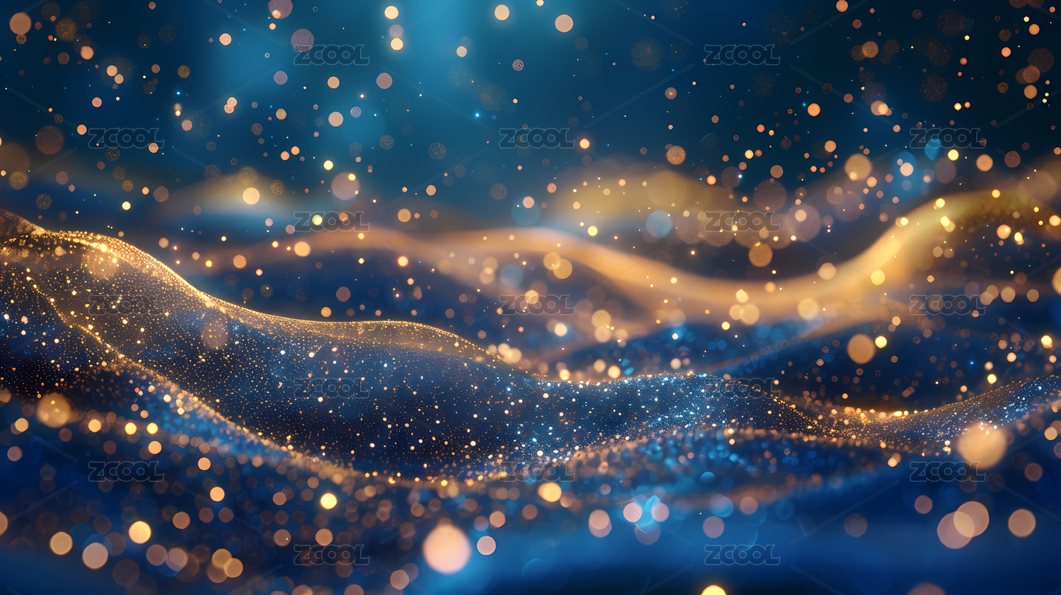金色光点在蓝色波浪间舞动