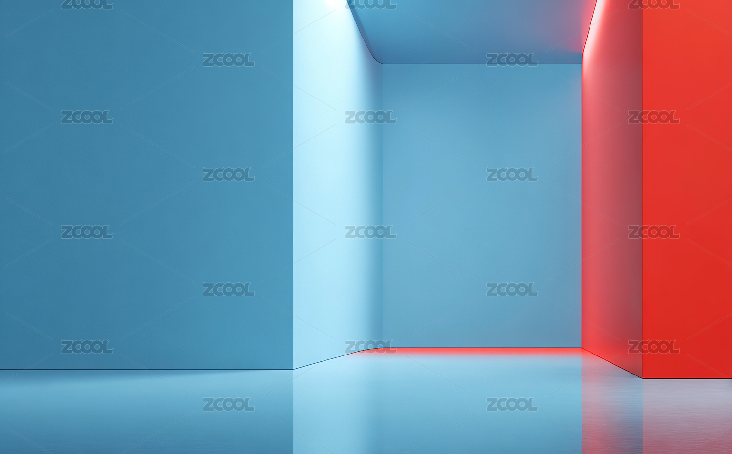 蓝红几何空间抽象场景