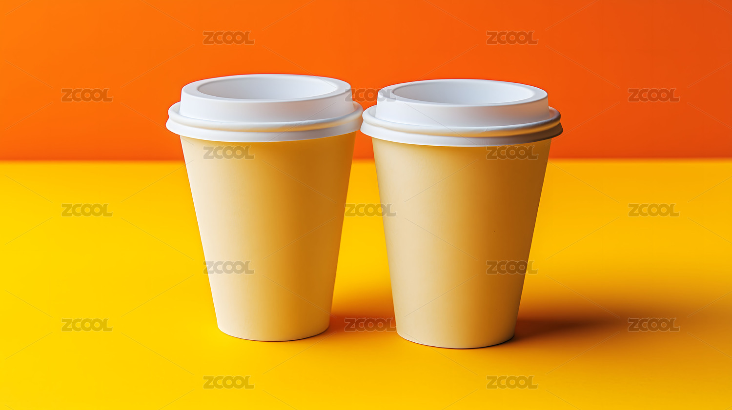 一个棕色杯子上面一个白色盖子和一个棕色盖