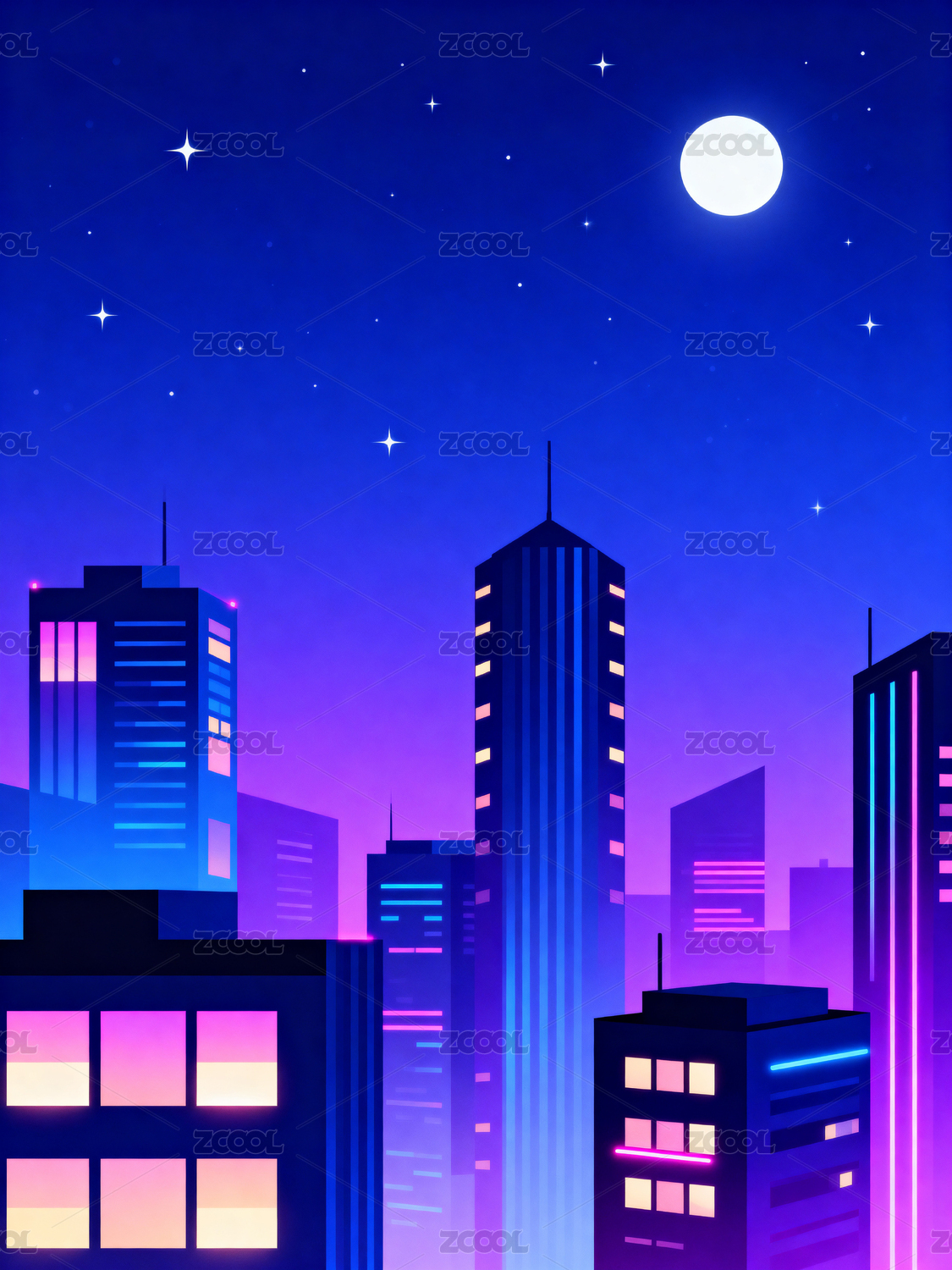 中秋节,月圆,美满,高楼,夜景,矢量,背景,模板,手绘,插画