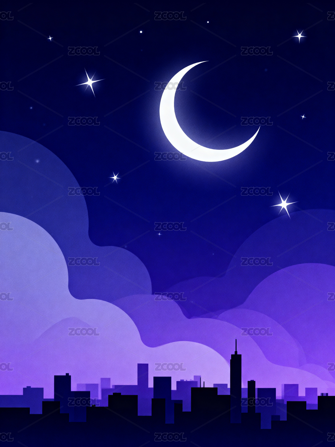 中秋节月圆美满高楼林立矢量手绘插画 晚安插画