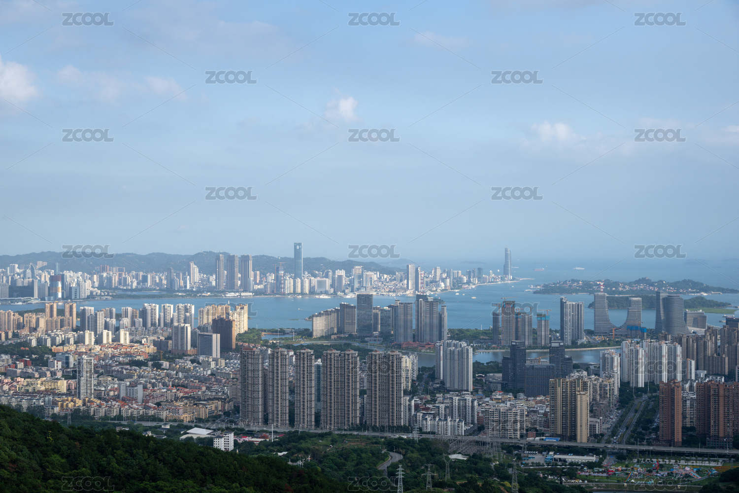 中国深圳南山公园俯瞰蛇口城市建筑群