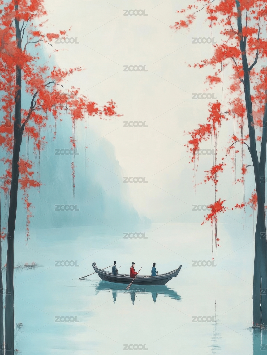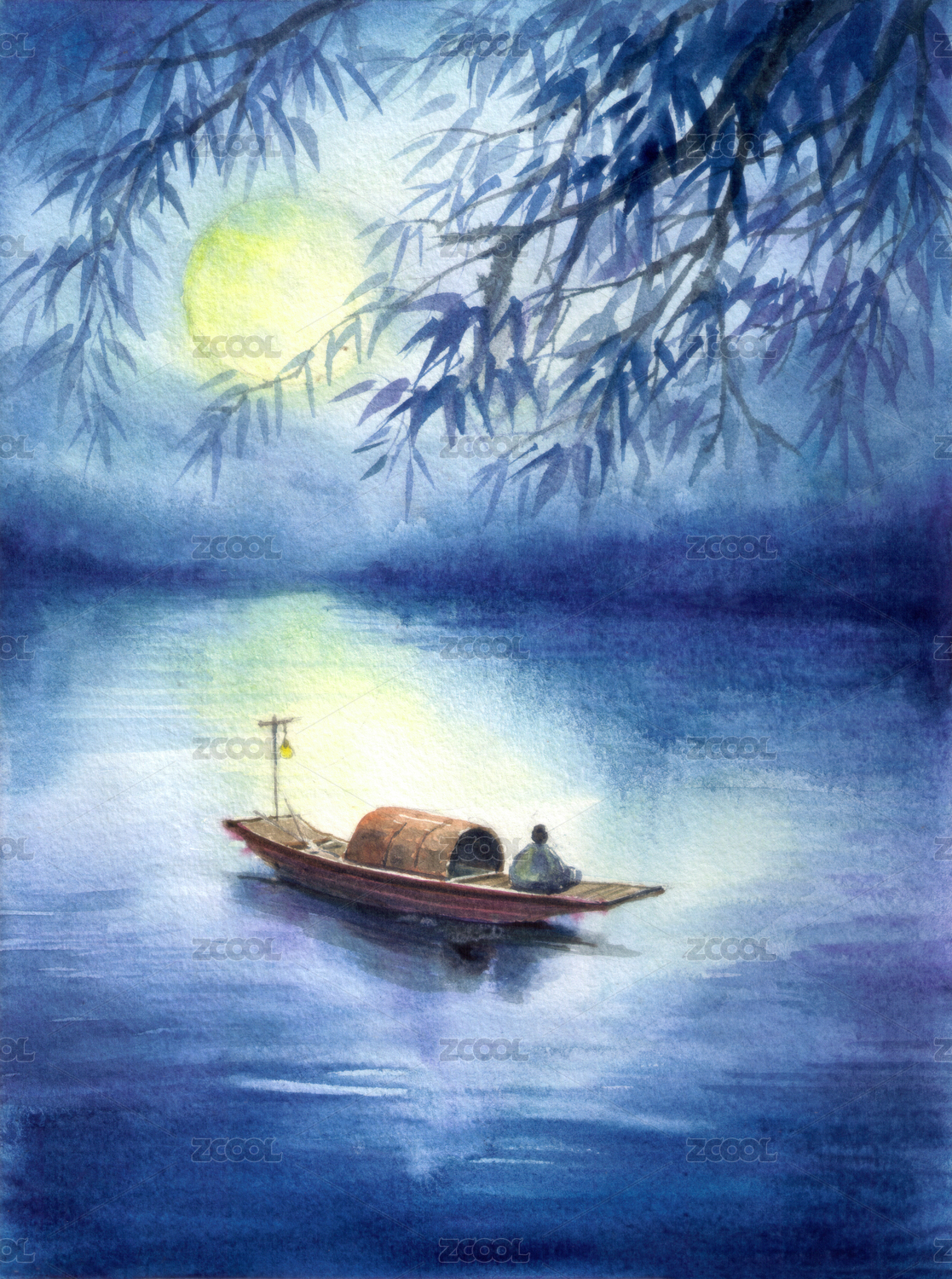 山水画,水墨画,中国画,禅意,静谧,宁静,平和,孤独,人物,桥