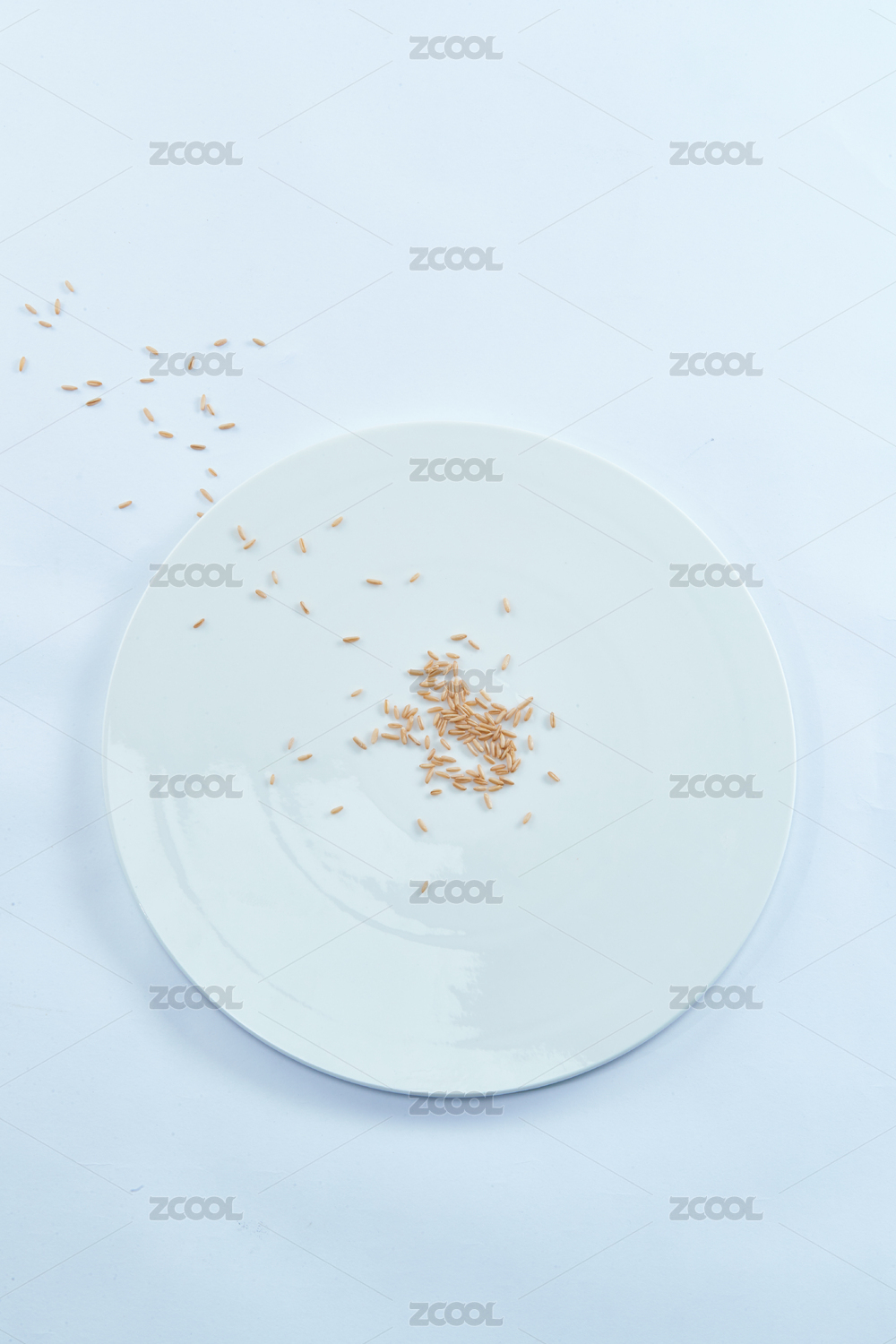 白色背景,瓷器,特写,粮食,农产品,莜麦,燕麦米,木质勺子,营养价值,散落的燕麦米