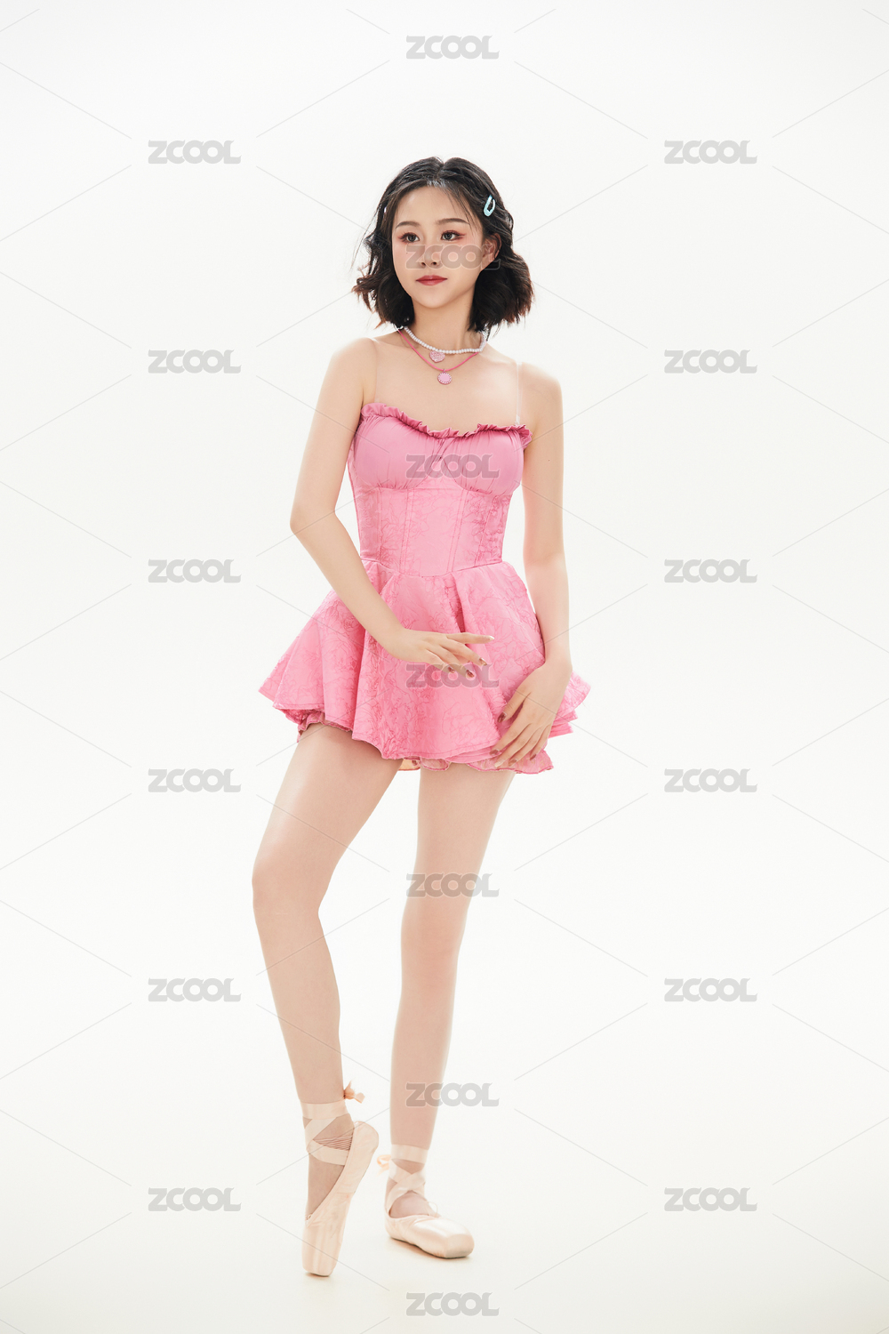 身穿粉色芭蕾舞服跳舞的亚洲少女