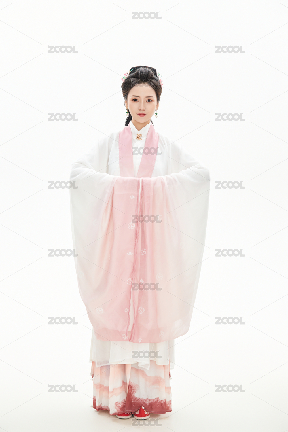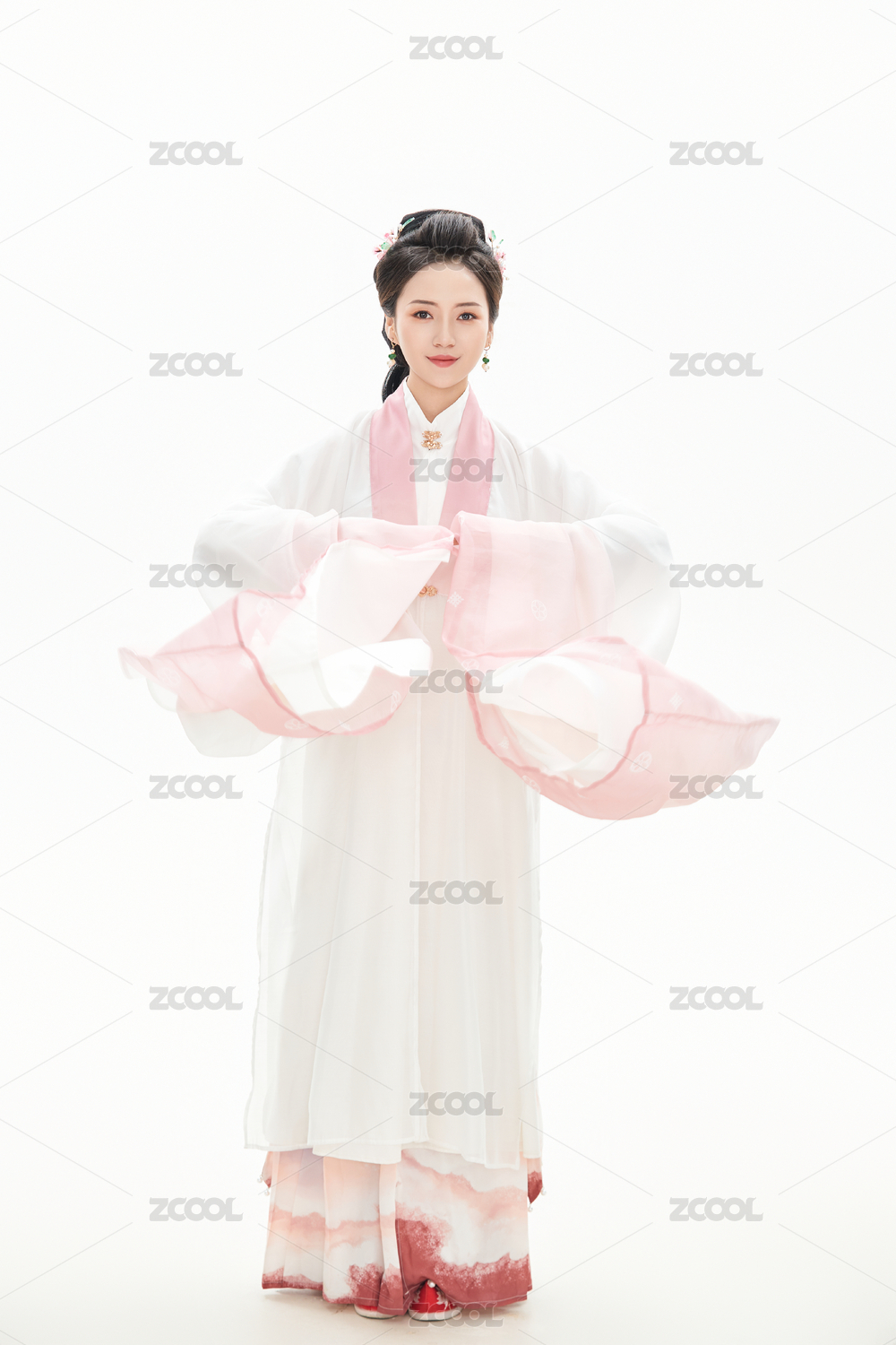 白色背景下穿着南北宋朝汉服的女人