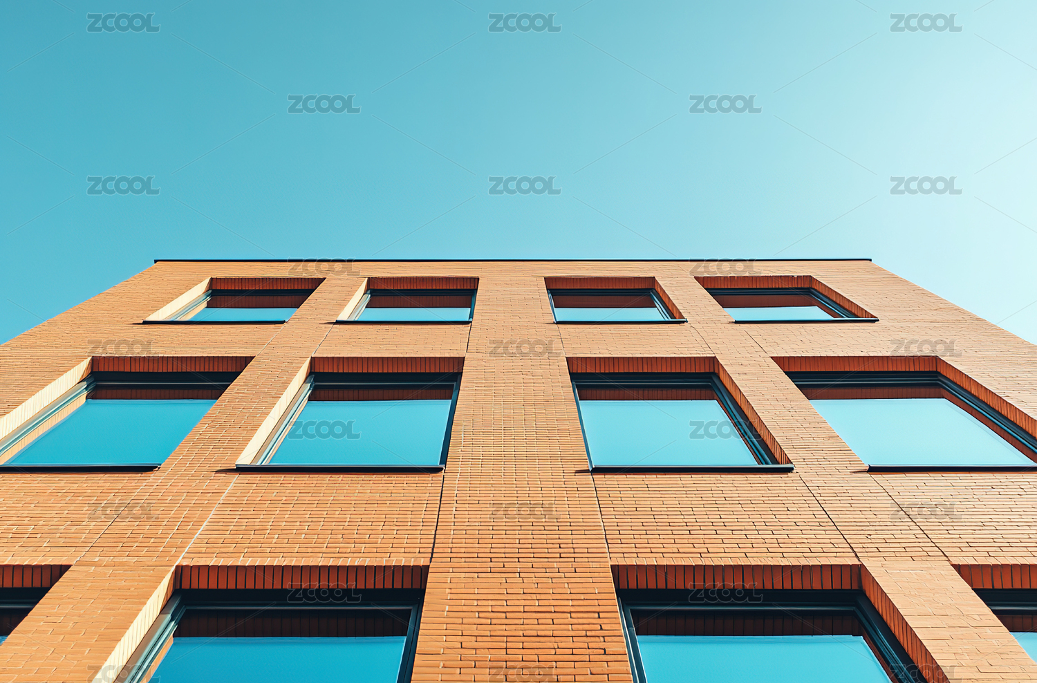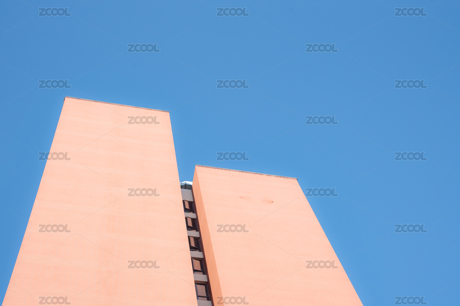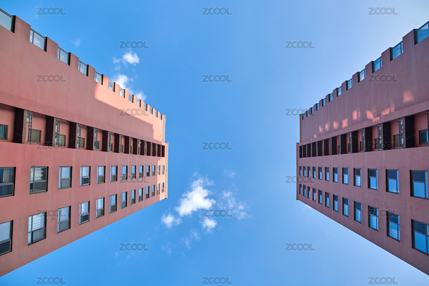 晴朗蓝天下的建筑低角度视图
