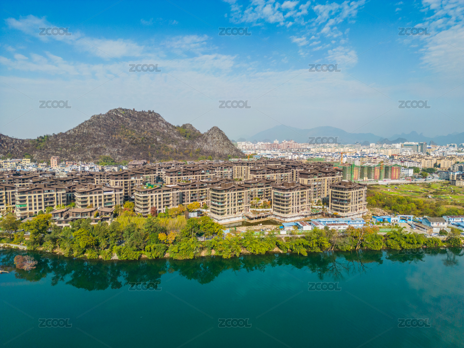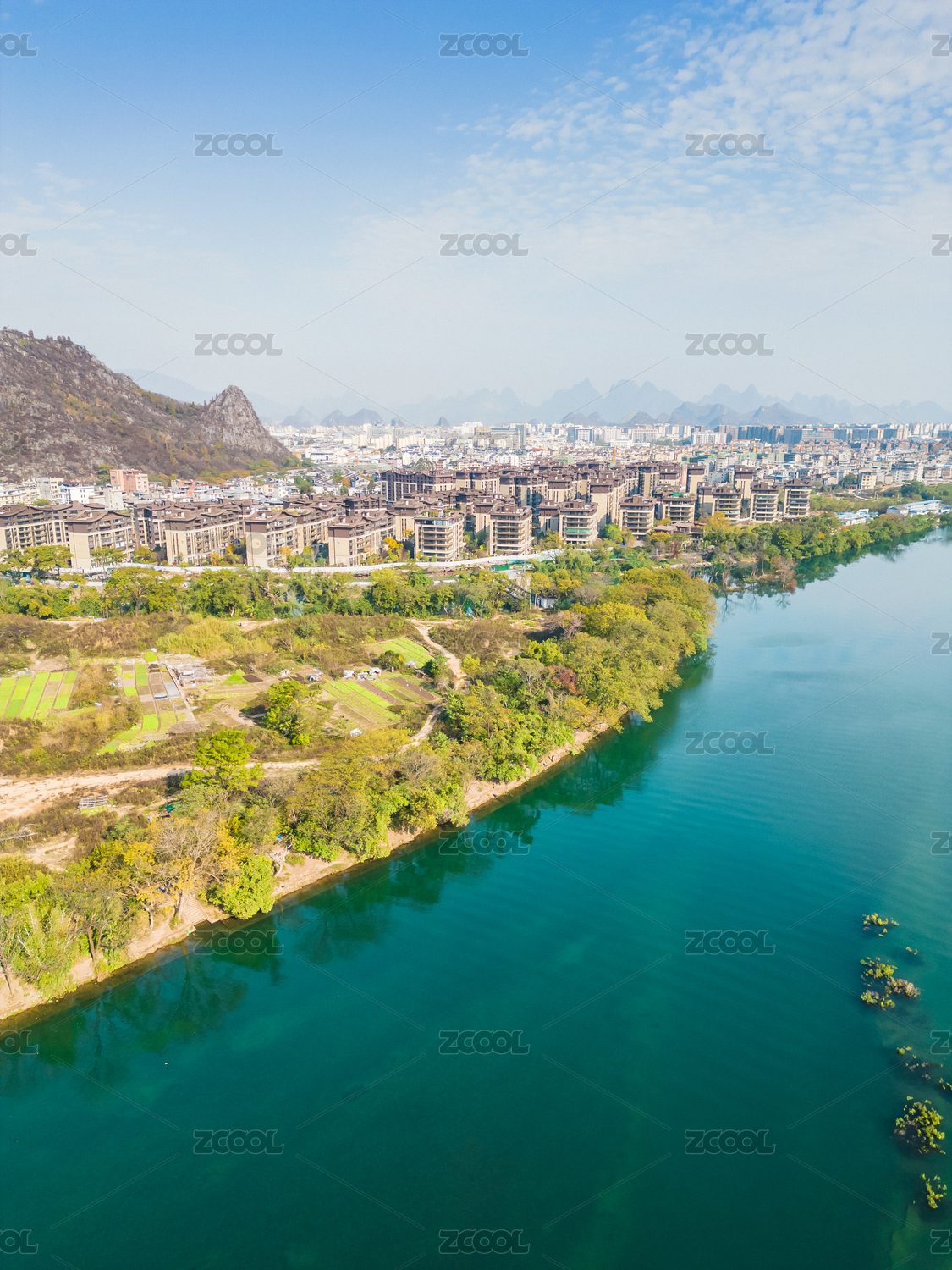 桂林,冬季,江河,城市,风光,航拍,高空,广西
