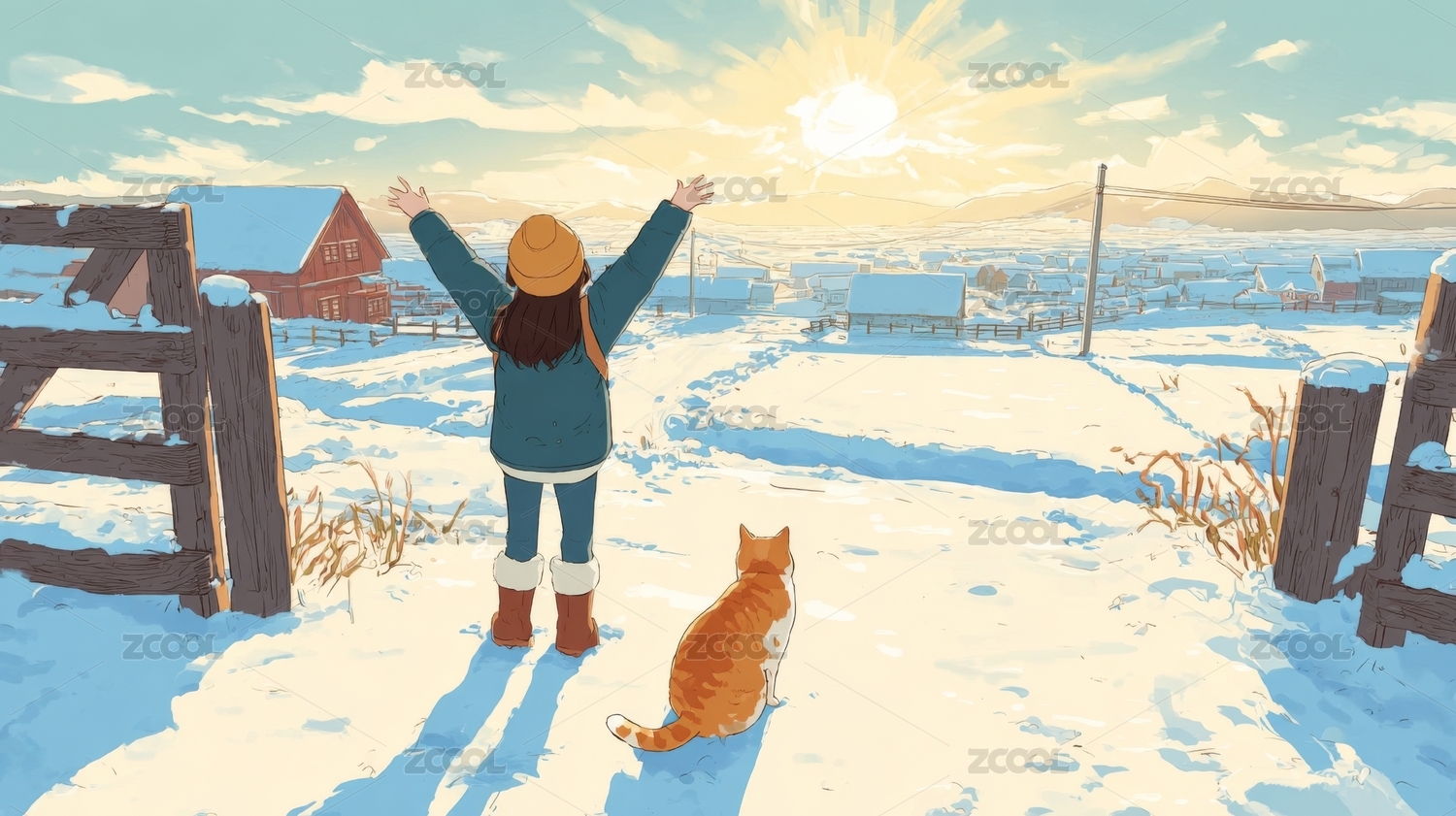 插画,可爱,女孩,猫,年轻,动物,背景,快乐,跑步,奔跑