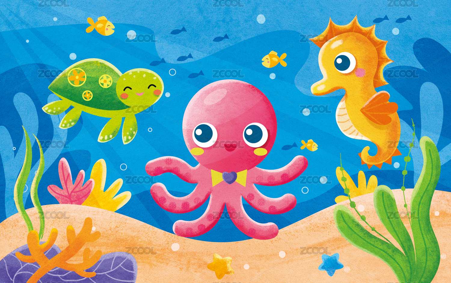 萌系章鱼海底探险