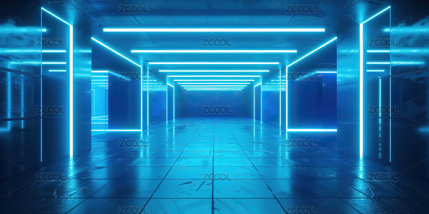 抽象,现代,光,建筑,发光,光效,蓝光,走廊