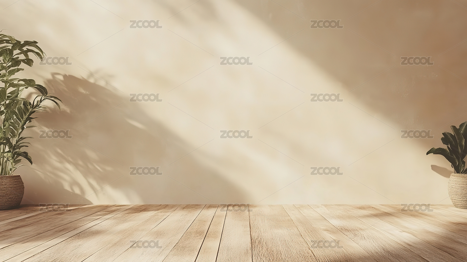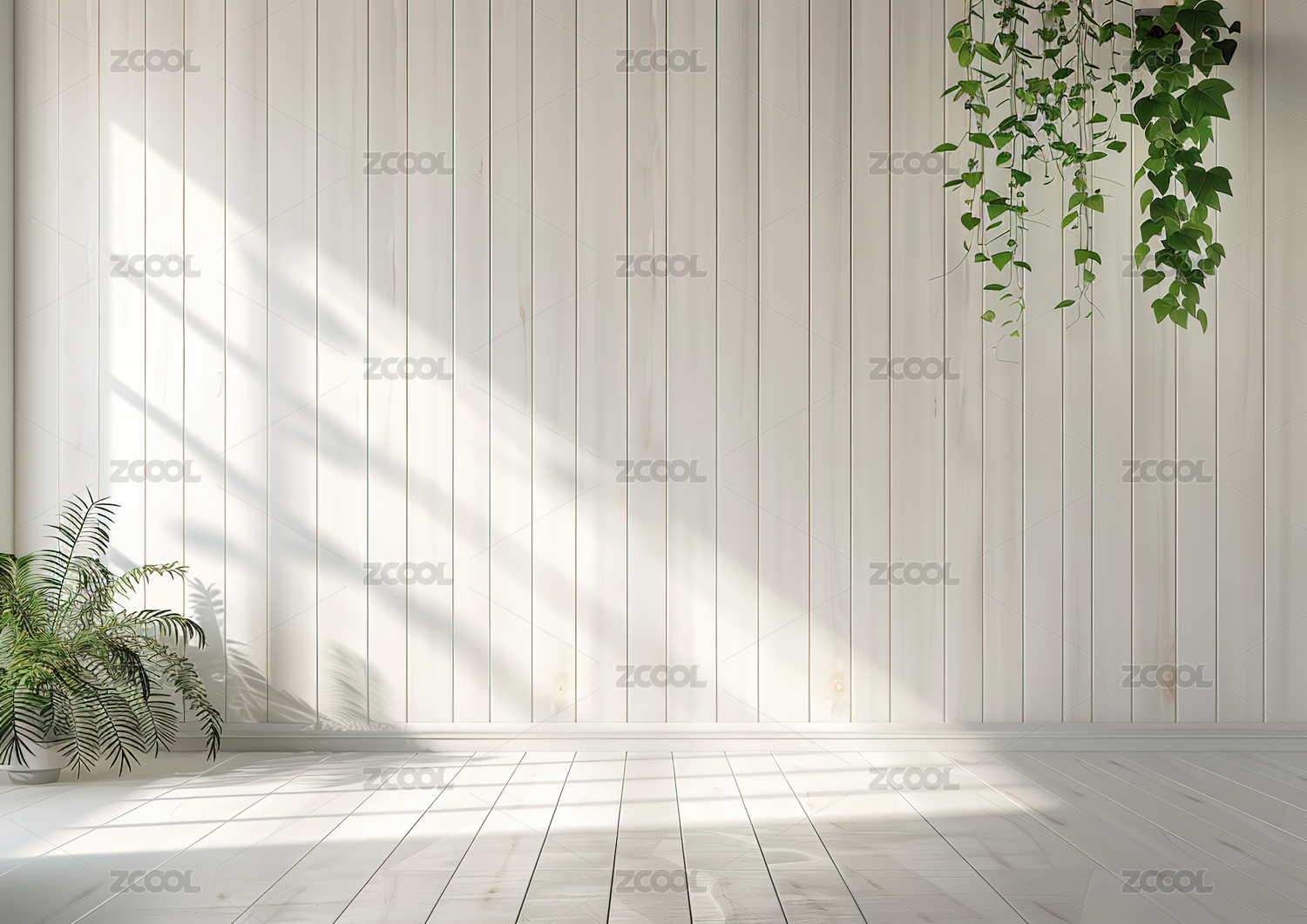 干净的室内白墙和绿植装饰简约空白渲染背景