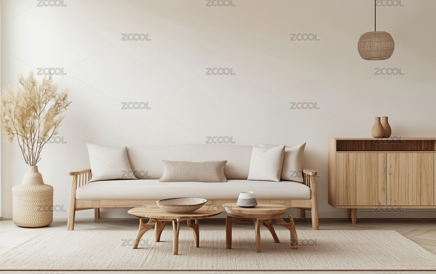 粗麻布家居沙发地毯等摆设的客厅空场景
