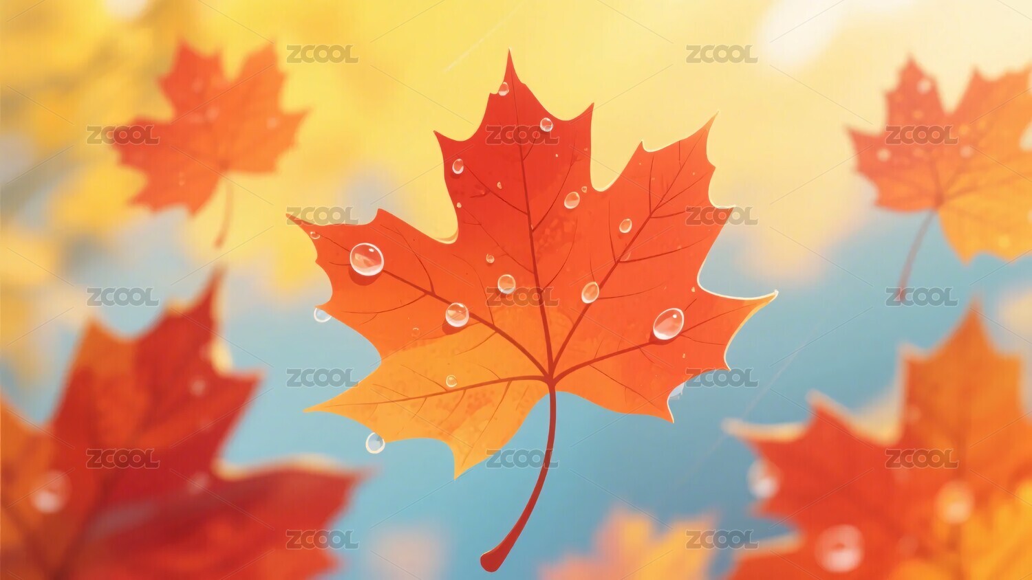 金黄枫叶水珠橙黄背景