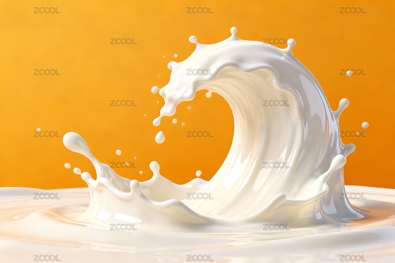 白色牛奶在灰色背景前飞溅 形成动态水花形
